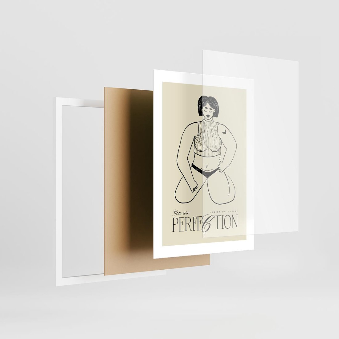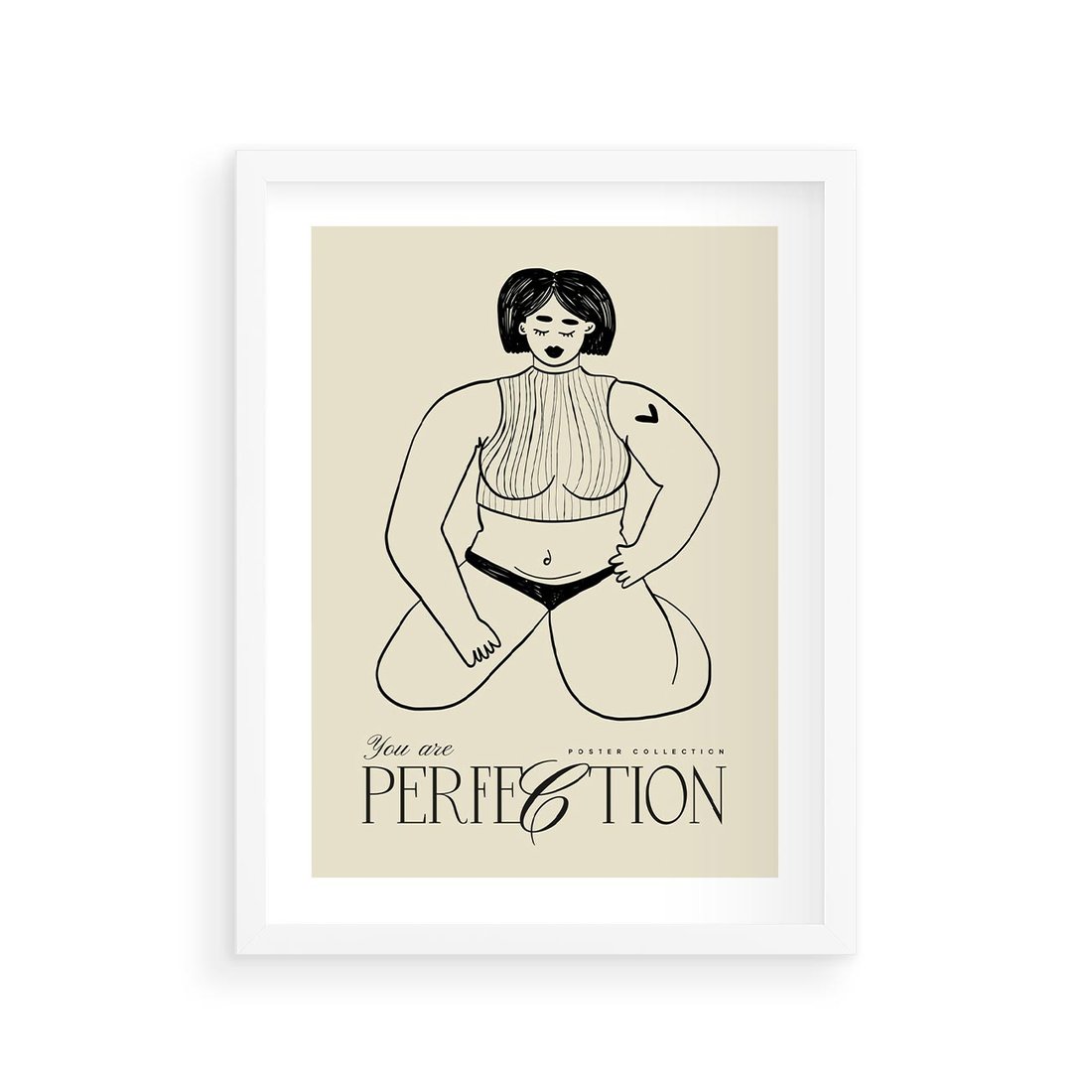 Ten wyjątkowy plakat, z subtelnym rysunkiem kobiety, wyraża piękno samoakceptacji. Wspierana przez poruszające słowa typografii, ta sztuka zachęca do odkrywania siły i pewności siebie we własnej skórze.