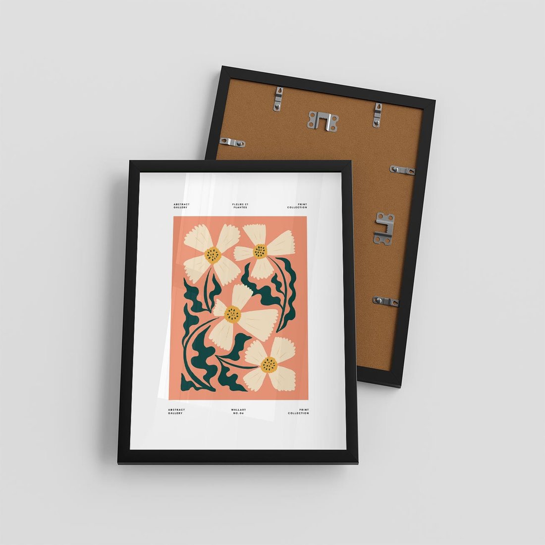 Ta minimalistyczna kompozycja przedstawia białe kwiaty na delikatnym różowym tle. To obraz, który w swojej prostocie oddaje subtelność i elegancję natury. Idealny wybór dla tych, którzy cenią spokojny minimalizm oraz chcą wprowadzić do swojego wnętrza delikatny i harmonijny akcent kwiatowy.