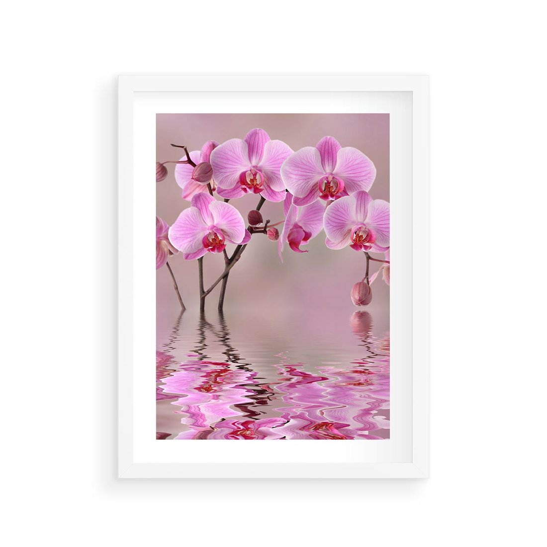 Plakat w ramie 30x40 - Relaksacyjne spa w otoczeniu storczyka - spa, storczyk - rama biała