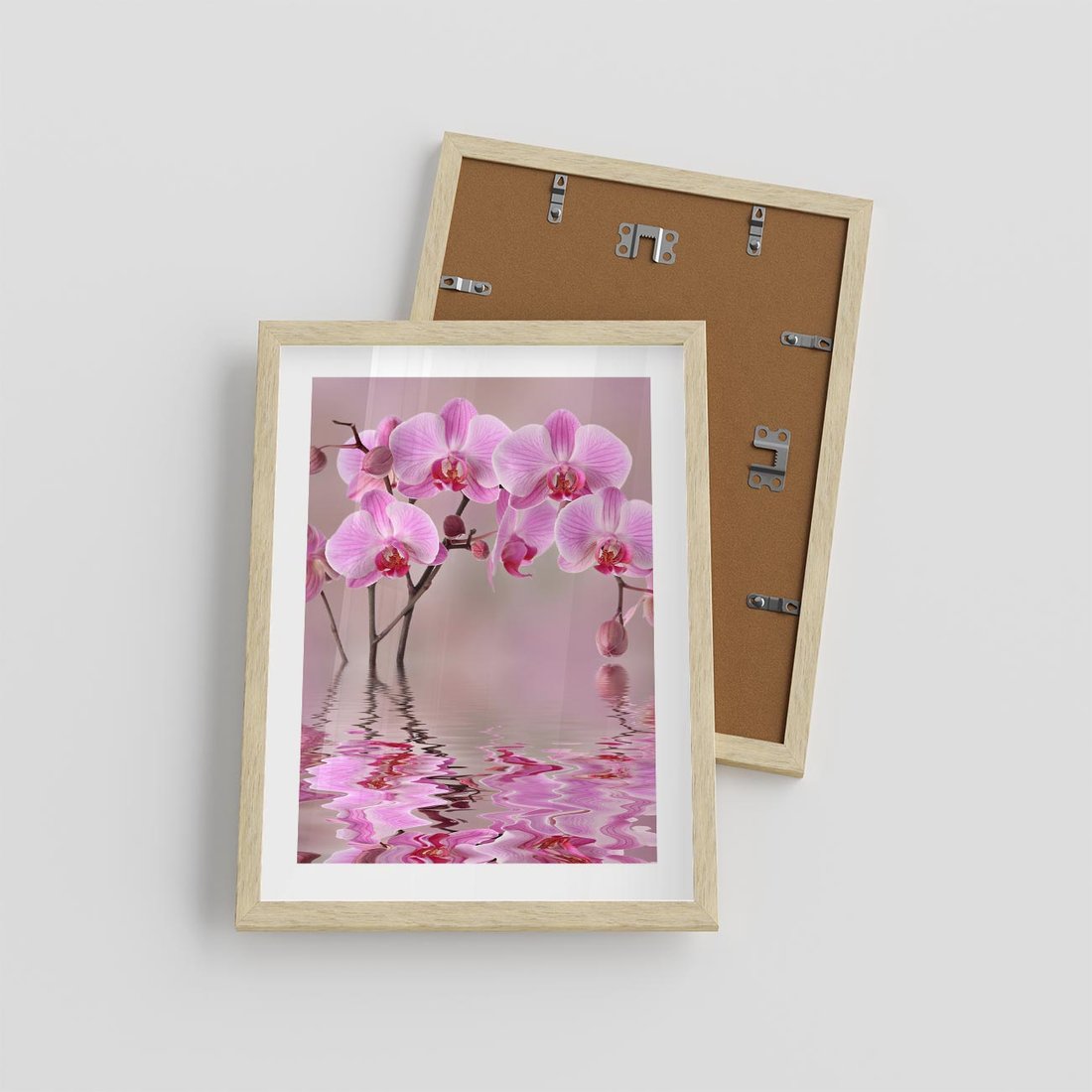 Plakat w ramie 30x40 - Relaksacyjne spa w otoczeniu storczyka - spa, storczyk - rama drewno