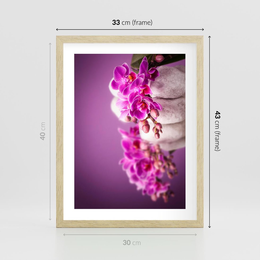 Plakat w ramie 30x40 - Relaksująca orchidea w spa - spa, orchidea - rama drewno