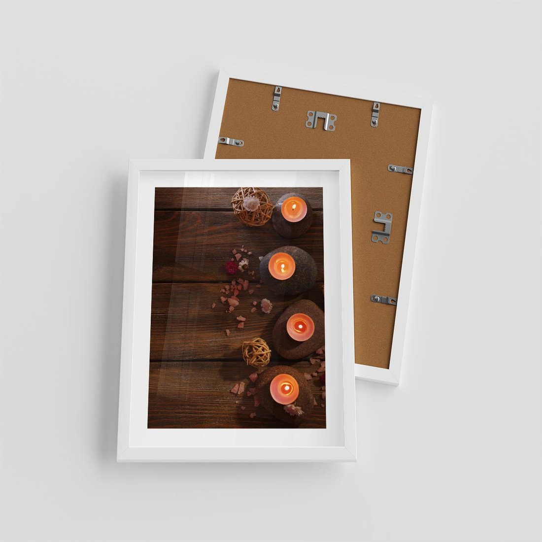 Plakat w ramie 30x40 - Relaksujące spa z pochodniami - spa, świece - rama biała