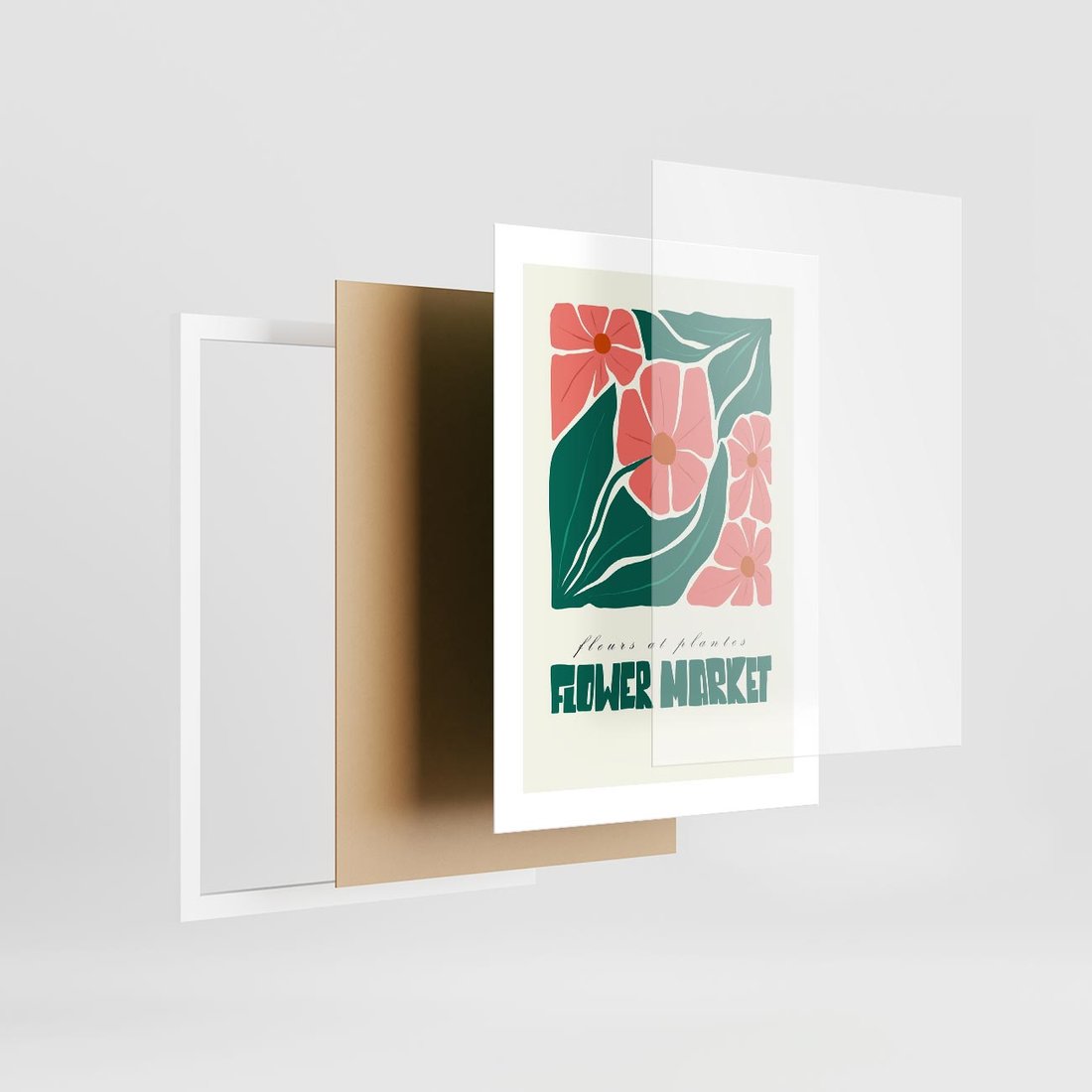 Plakat w ramie 30x40 - Retro Inspiracja - minimalistyczna kwiatowa kompozycja, pastelowe kolory - rama biała