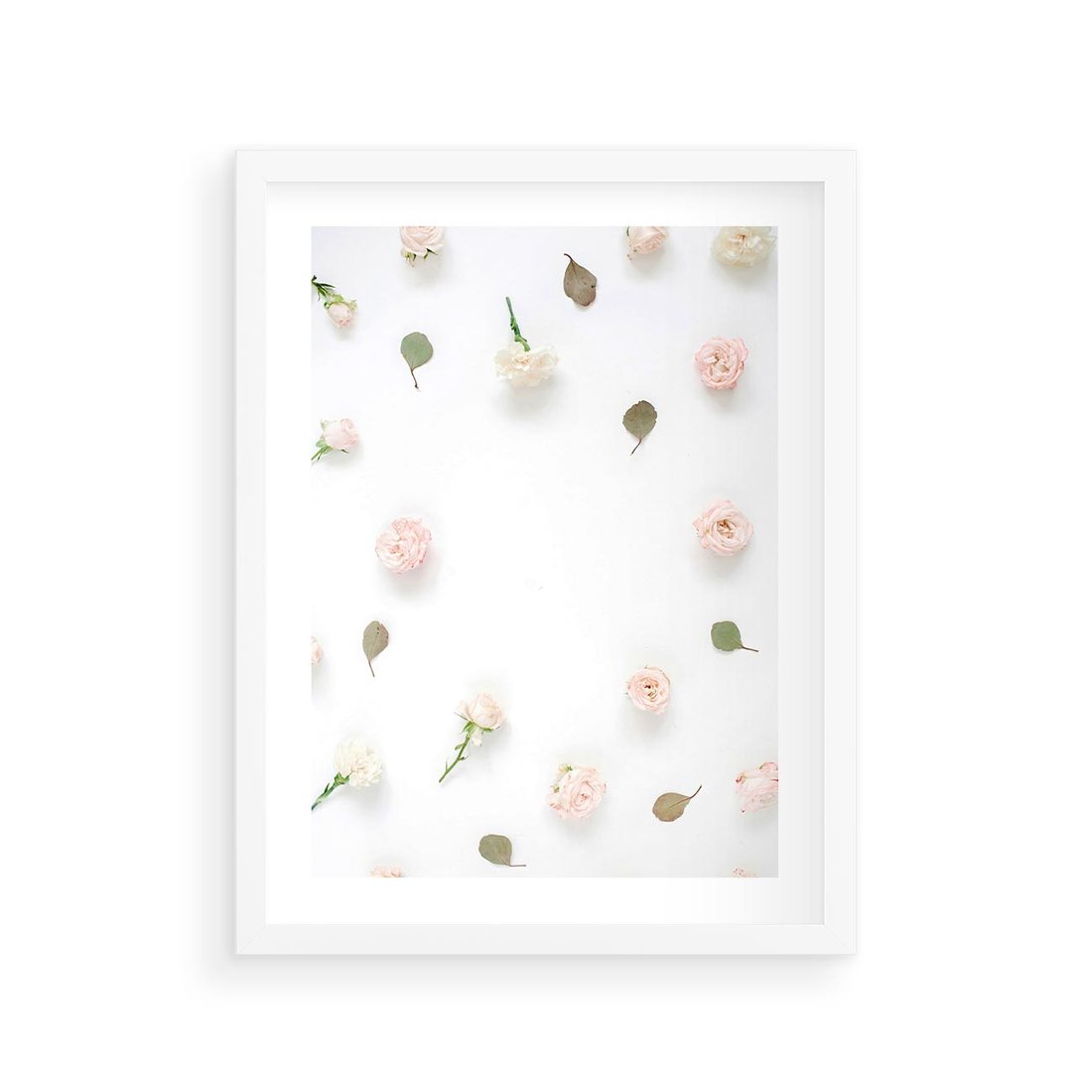 Plakat w ramie 30x40 - Romantyczna Kompozycja z Różami - kompozycja kwiatowa, róże - rama biała