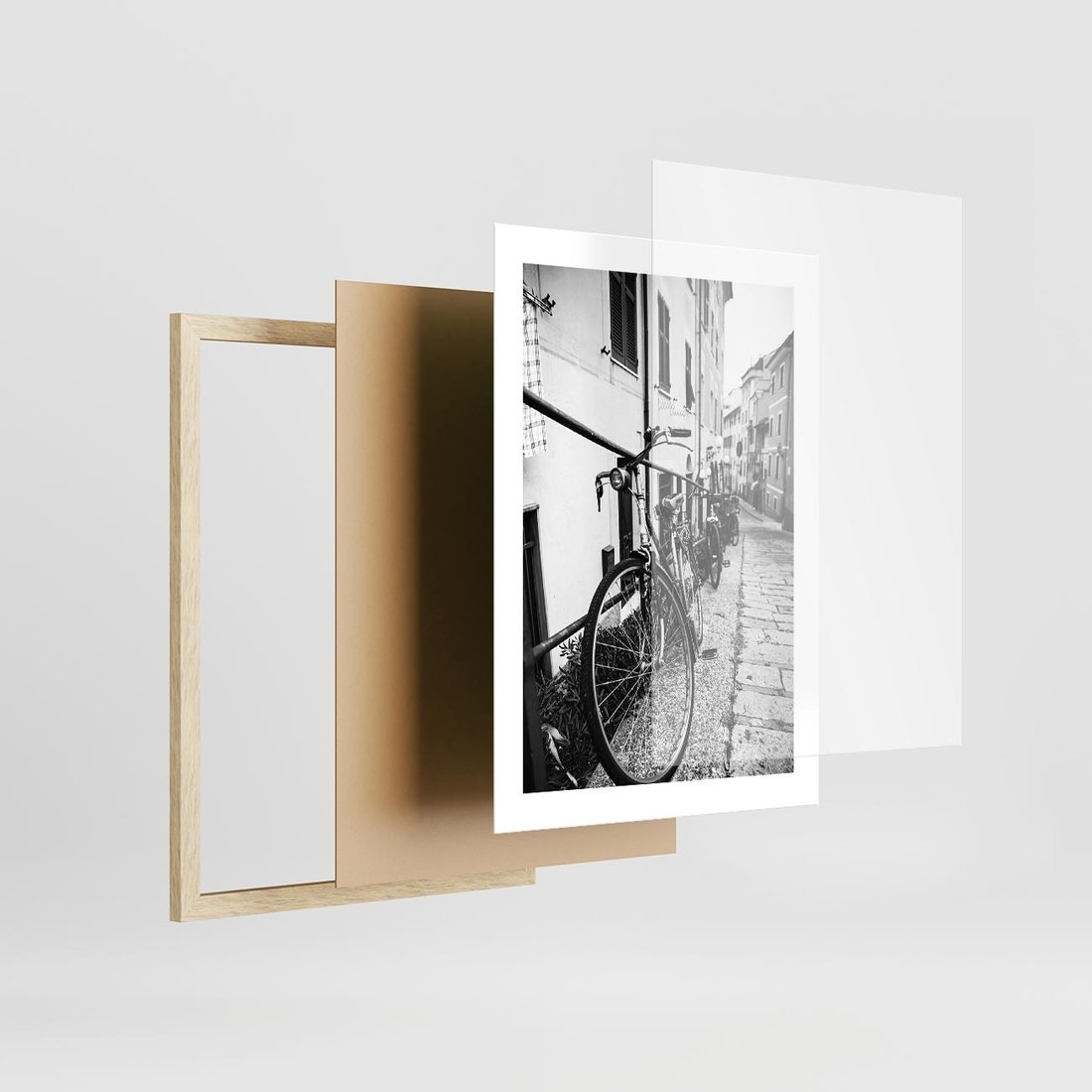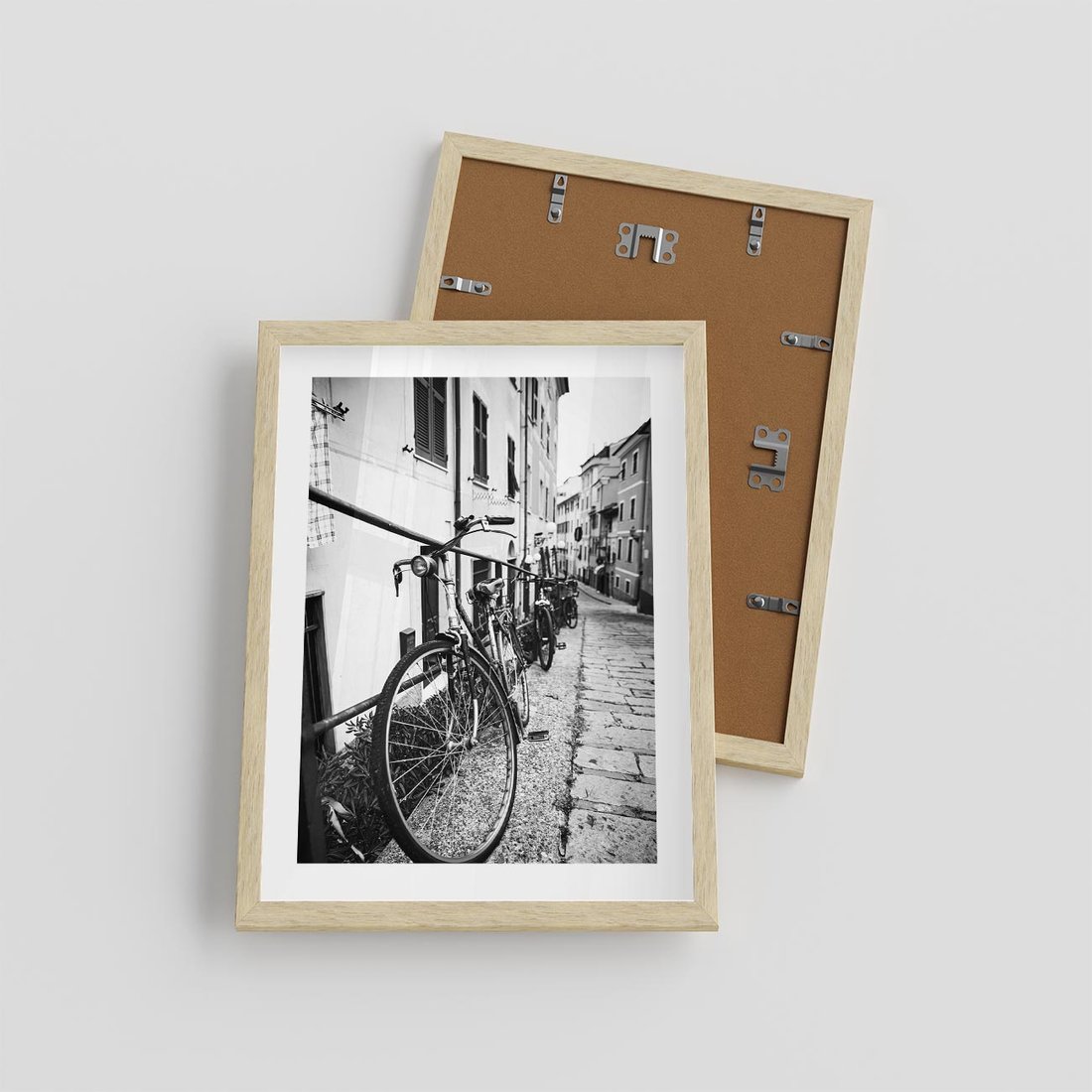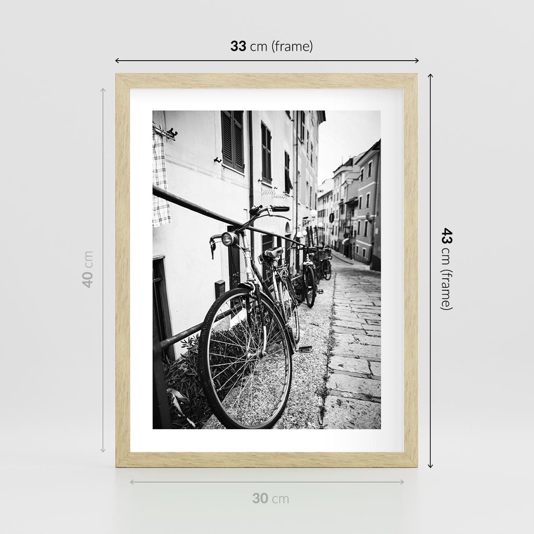 Plakat w ramie 30x40 - Rower w Kontraście - rower, czarno - rama drewno