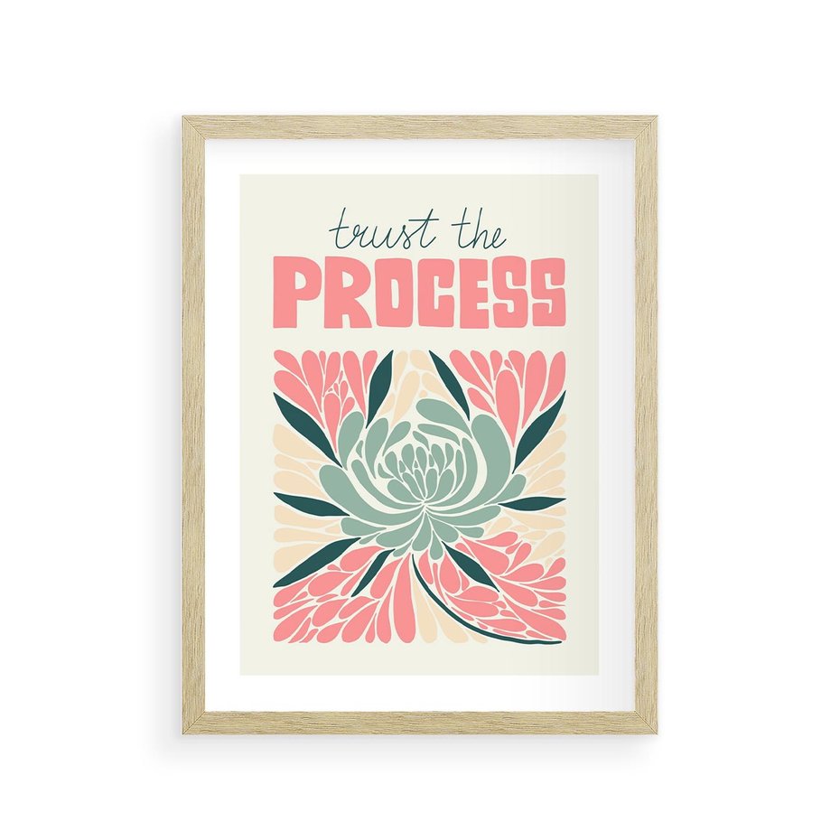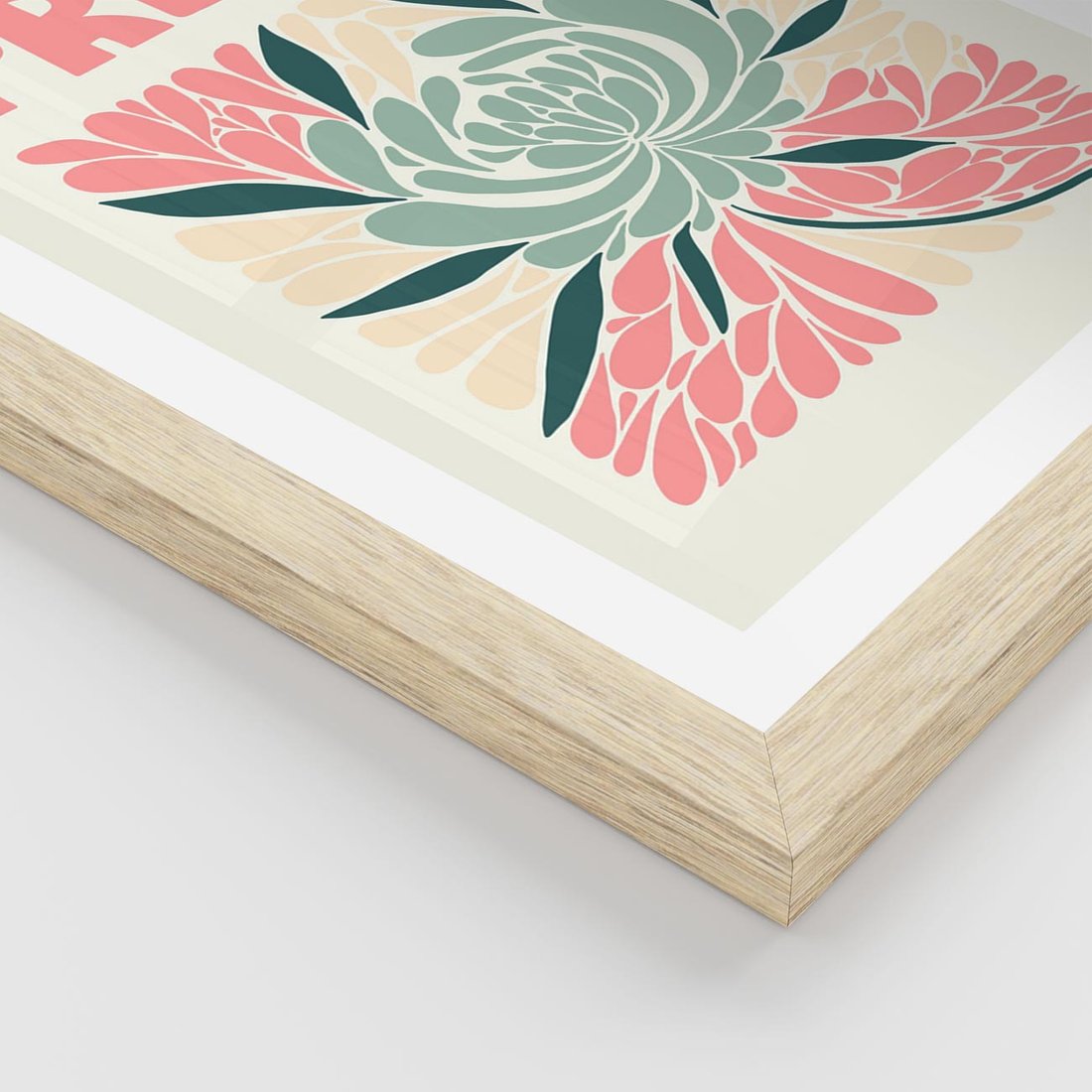 Plakat w ramie 30x40 - Rozbijające Barwy - abstrakcyjny pastelowy kwiat, wyrazista typografia - rama drewno