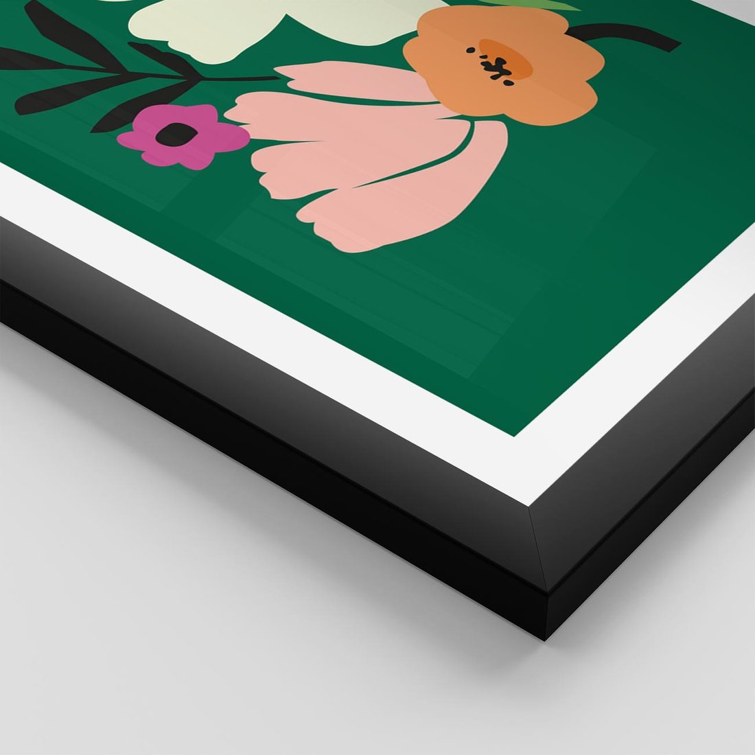 Plakat w ramie 30x40 - Rozbijające Echa - abstrakcyjne kwiaty, zielone tło - rama czarna