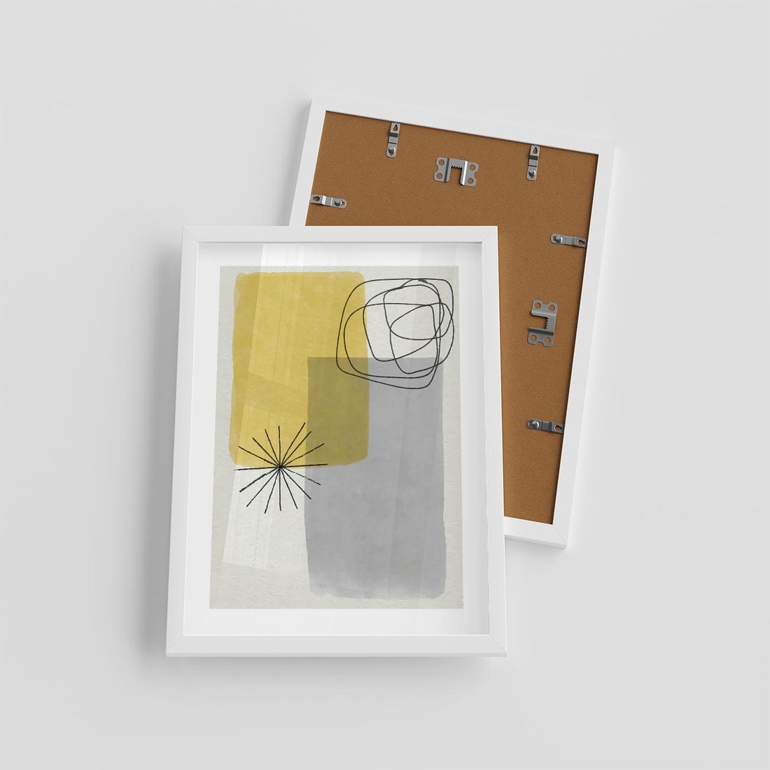 Odkryj abstrakcję w postaci akwarelowych plam w kontrastujących odcieniach czerni i żółci. To dynamiczne połączenie kolorów i form tworzy ekscytującą kompozycję, która przyciąga uwagę i pobudza zmysły.