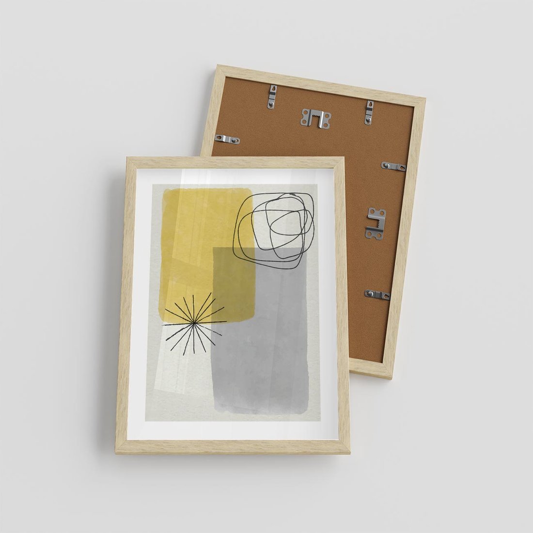 Odkryj abstrakcję w postaci akwarelowych plam w kontrastujących odcieniach czerni i żółci. To dynamiczne połączenie kolorów i form tworzy ekscytującą kompozycję, która przyciąga uwagę i pobudza zmysły.