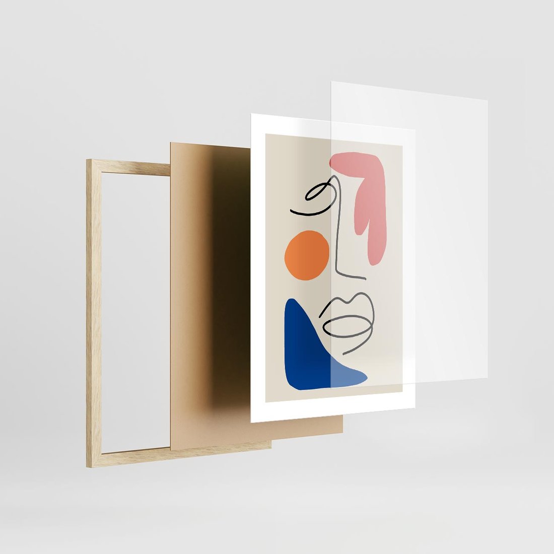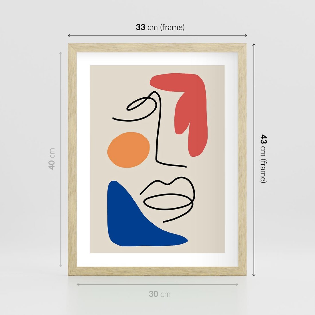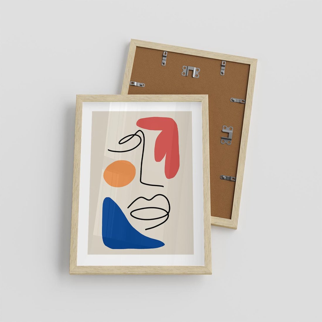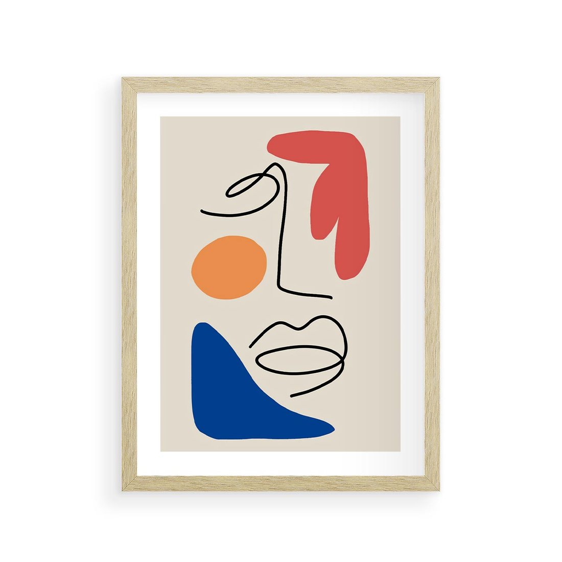Plakat w ramie 30x40 - Rozbijające Granice Kształtów - abstrakcyjny obraz, przypomina twarz - rama drewno