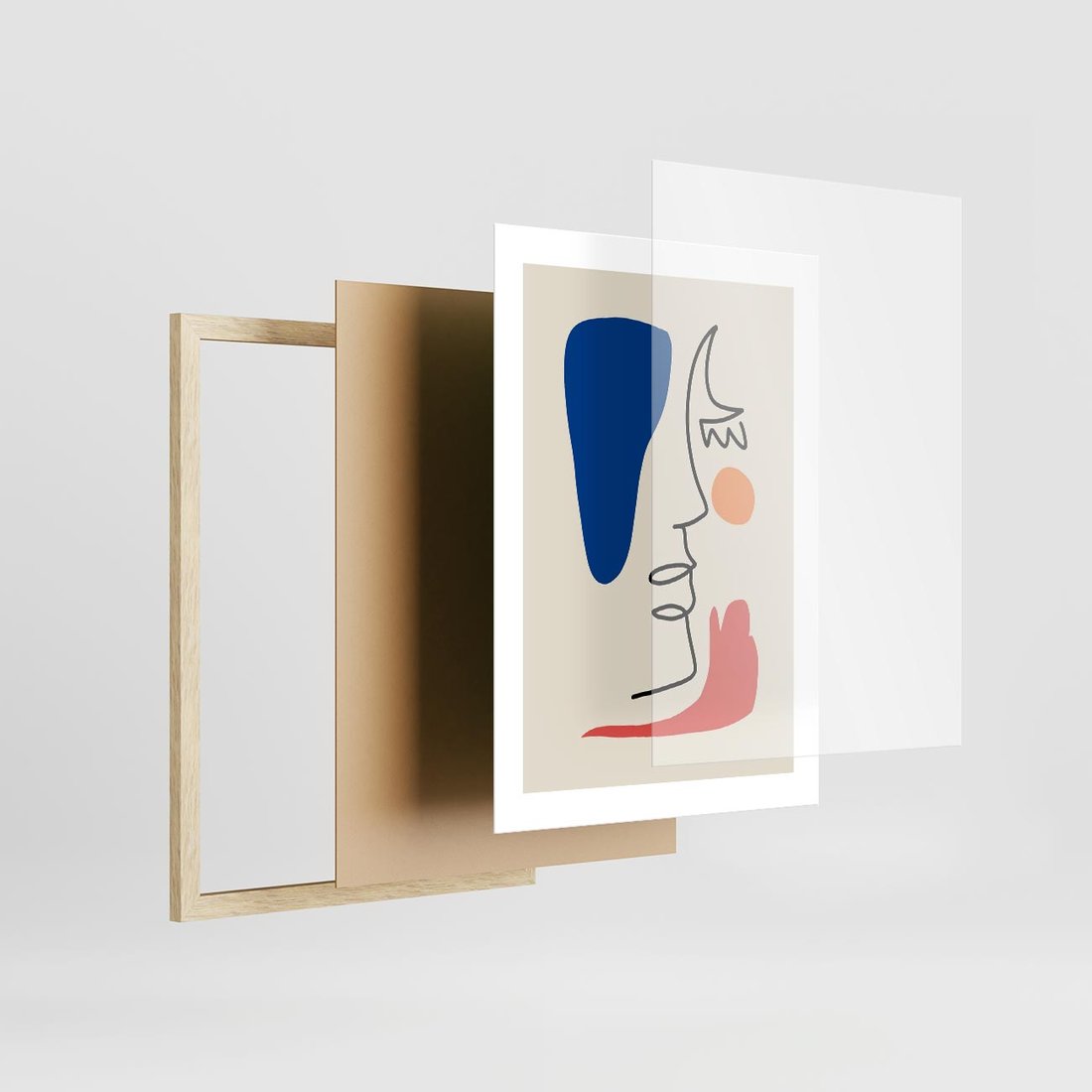 Plakat w ramie 30x40 - Rozbijające Symfonie Form - abstrakcyjny obraz, przypomina twarz - rama drewno