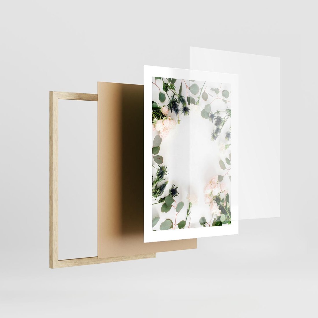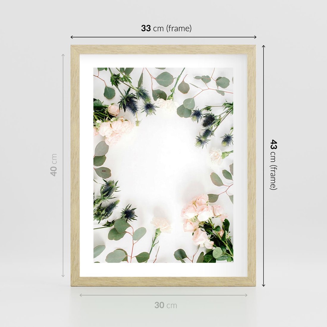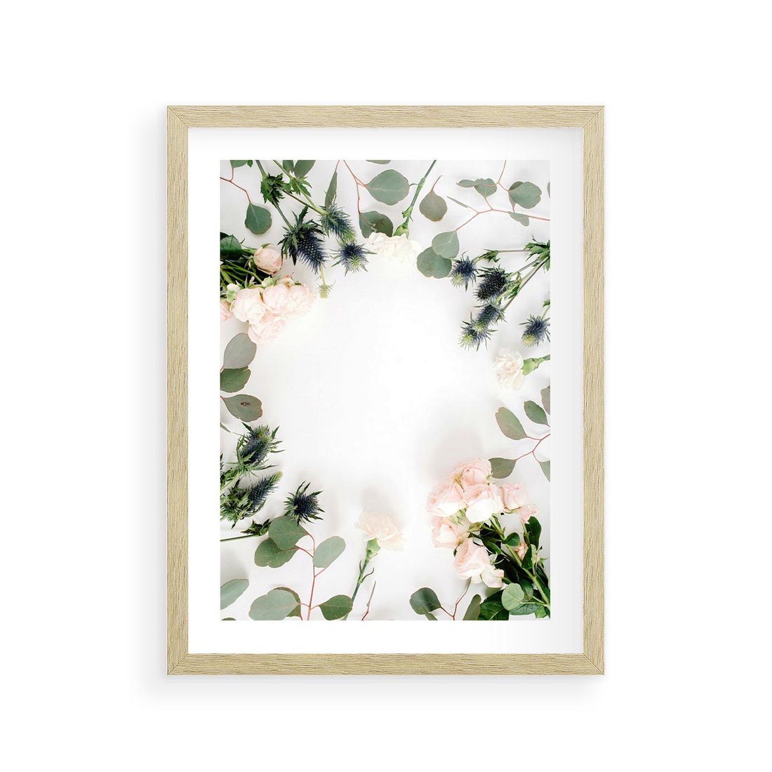Plakat w ramie 30x40 - Róże i Zielone Liście - kompozycja kwiatowa, róże - rama drewno