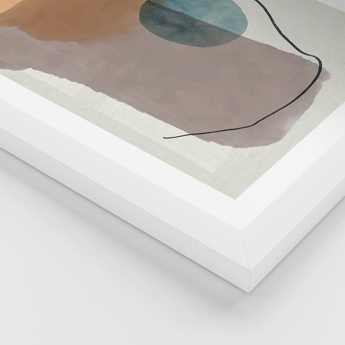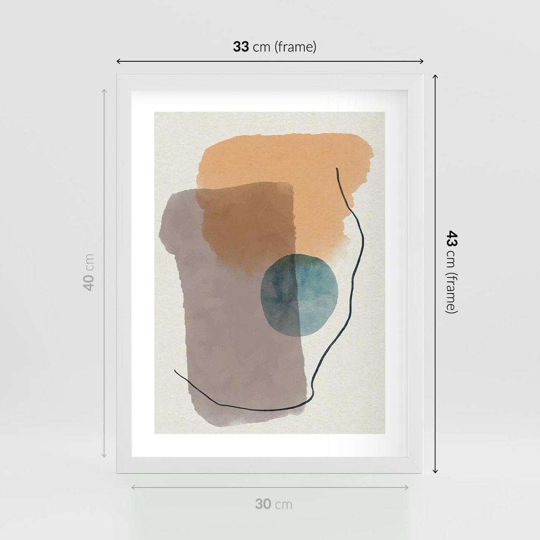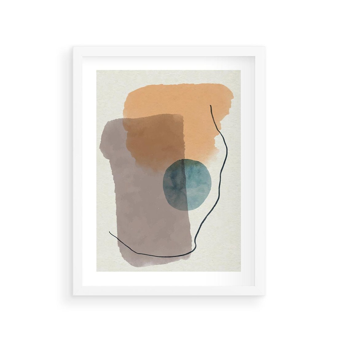 Plakat w ramie 30x40 - Rozkwitająca Akwarelowa Inspiracja - geometryczne elementy, stonowane ziemiste kolory - rama biała