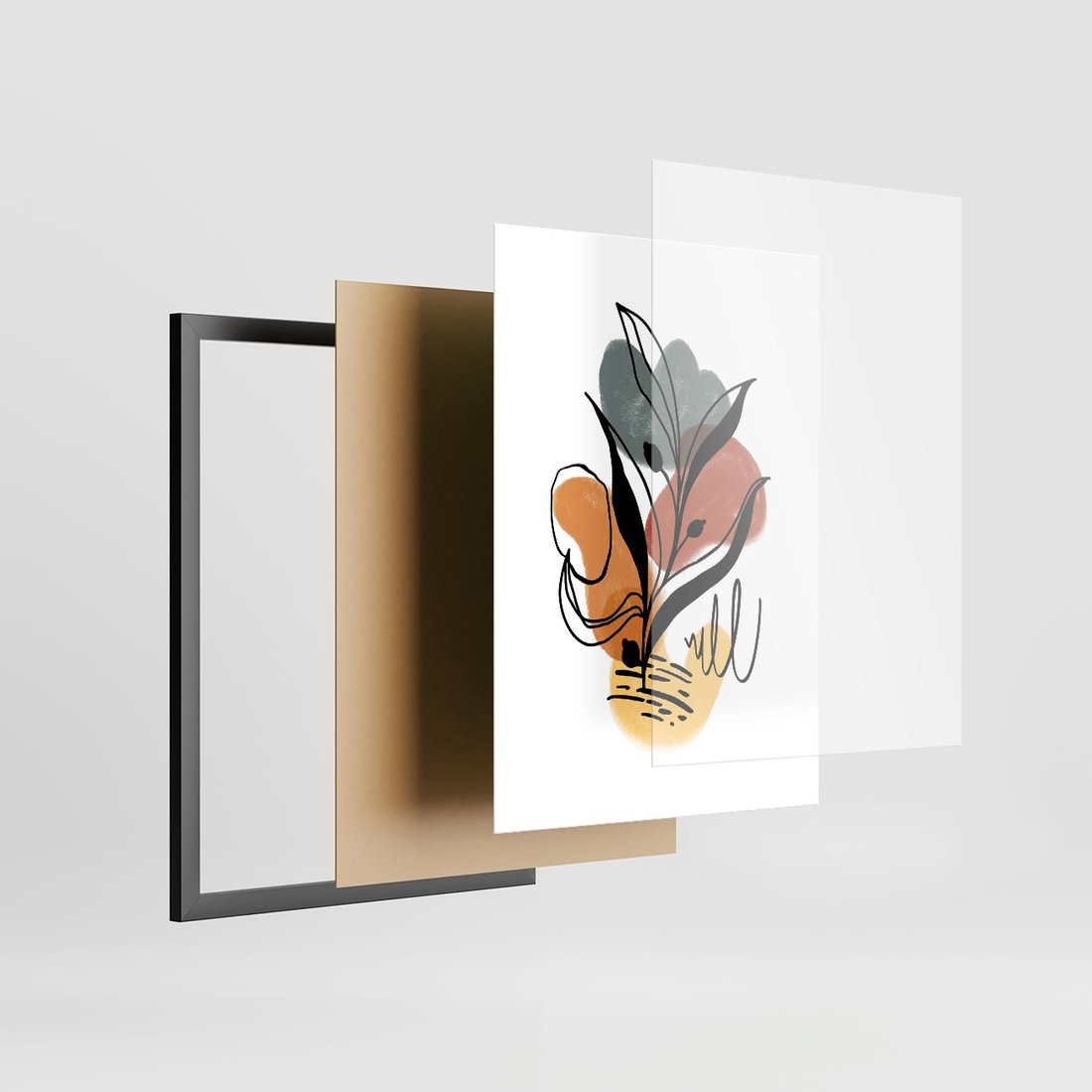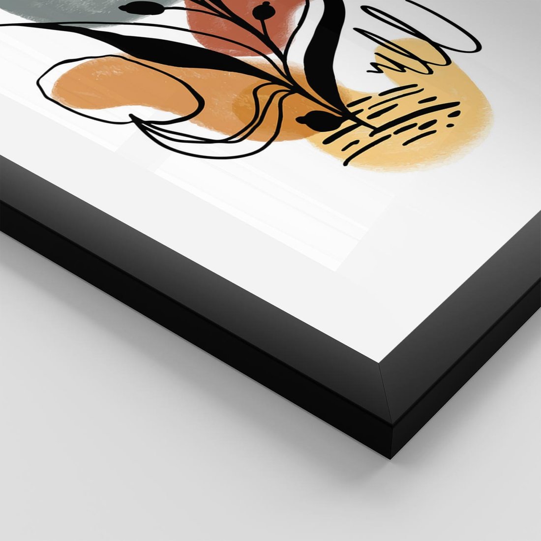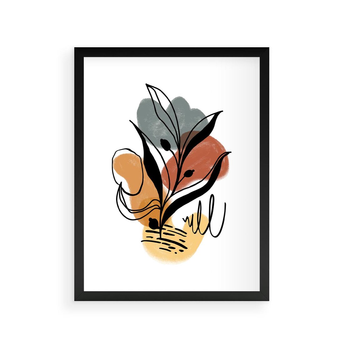 Nasz plakat to nowoczesna abstrakcja z czarnym szkicem elementów roślinnych, ozdobionym akwarelowymi plamami. To unikalne połączenie przynosi do Twojej przestrzeni wyrazistą energię i artystyczną głębię, oddając zarazem elegancję i dynamikę natury.