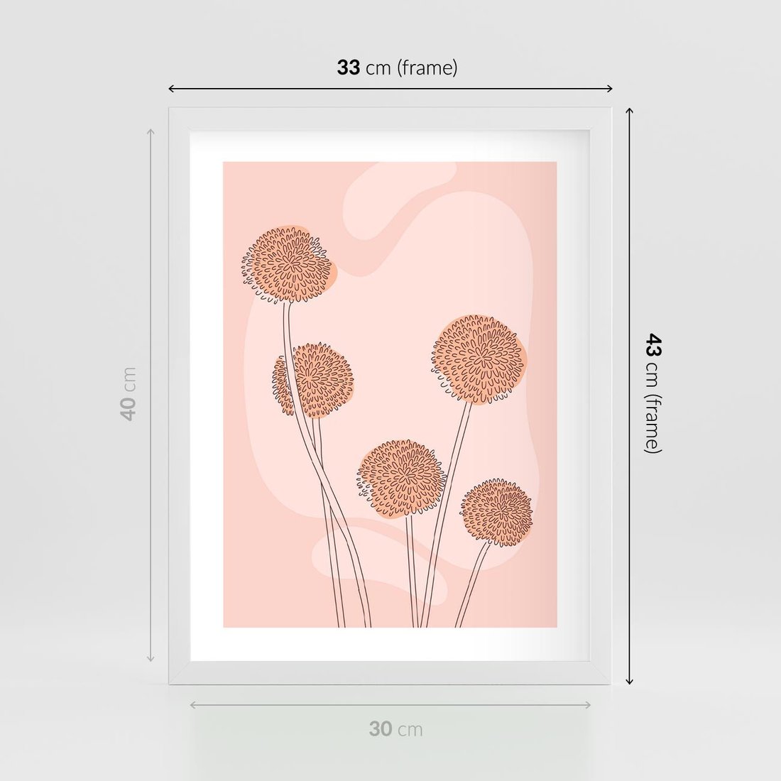 Plakat w ramie 30x40 - Rozkwitające Emocje - minimalistyczny plakat, pudrowe kwiaty - rama biała