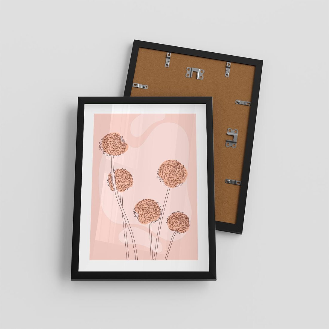 Minimalistyczny plakat z delikatnym konturem pudrowych kwiatów. To subtelne dzieło sztuki, które przynosi spokój i wyrafinowaną elegancję do Twojej przestrzeni.