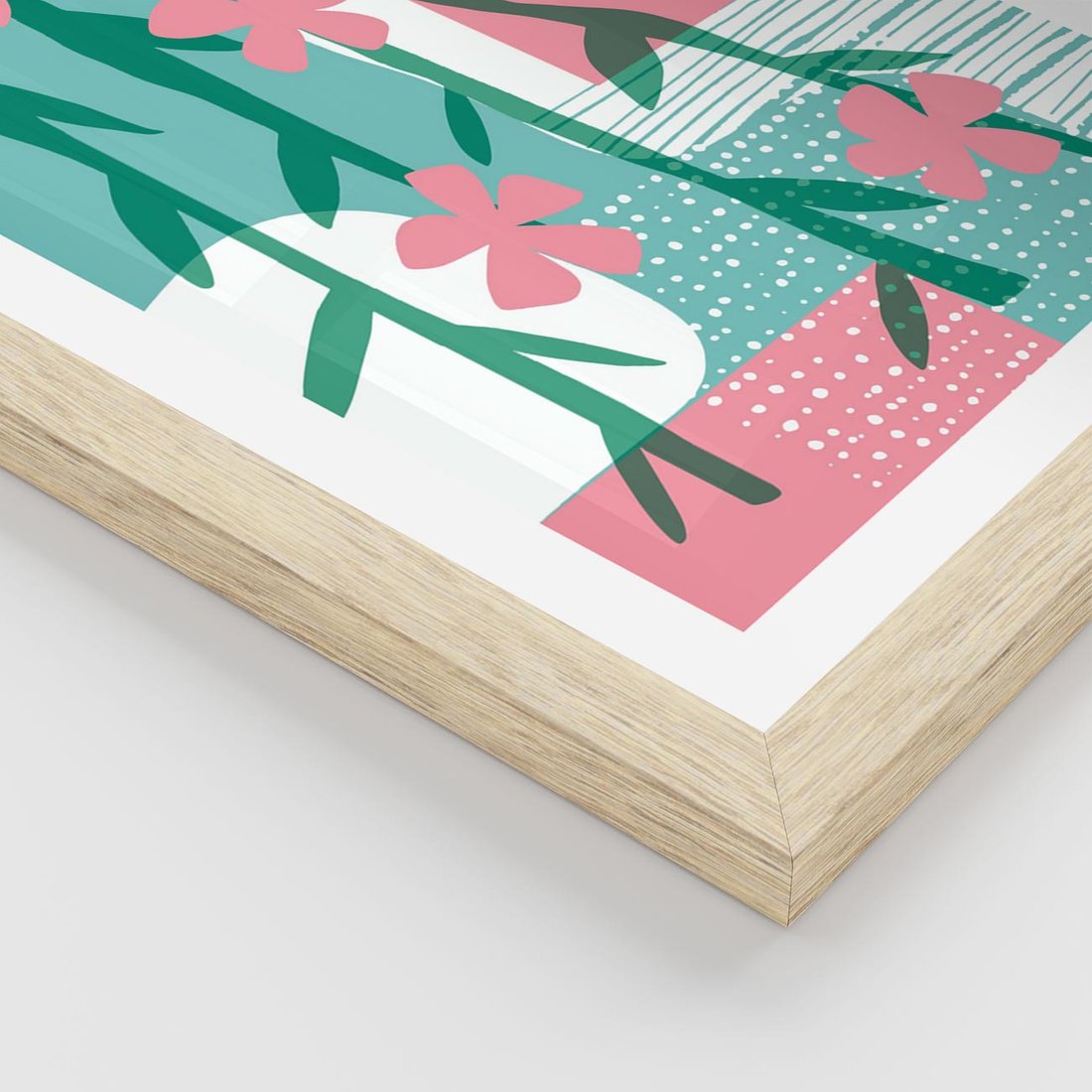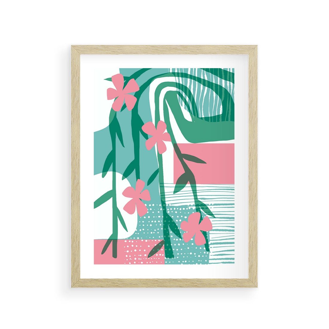 Plakat w ramie 30x40 - Rozkwitające Harmonie Form - abstrakcyjne pastelowe kwiaty, nowoczesna sztuka - rama drewno