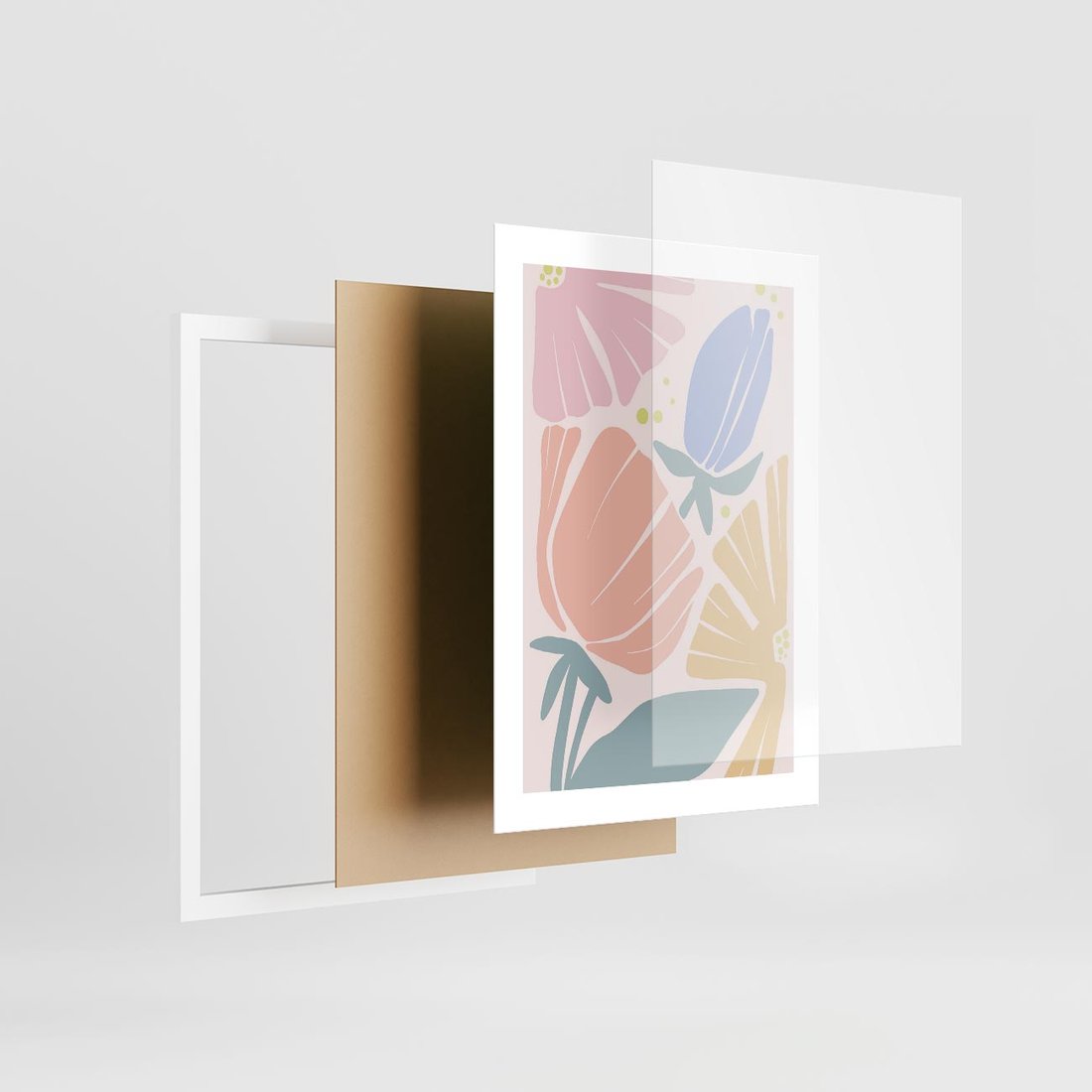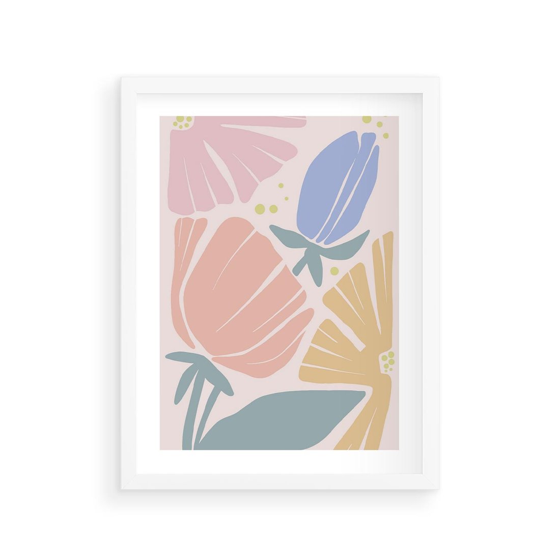 Plakat w ramie 30x40 - Rozkwitające Harmonie Natury - pastelowe kwiaty, na beżowym tle - rama biała