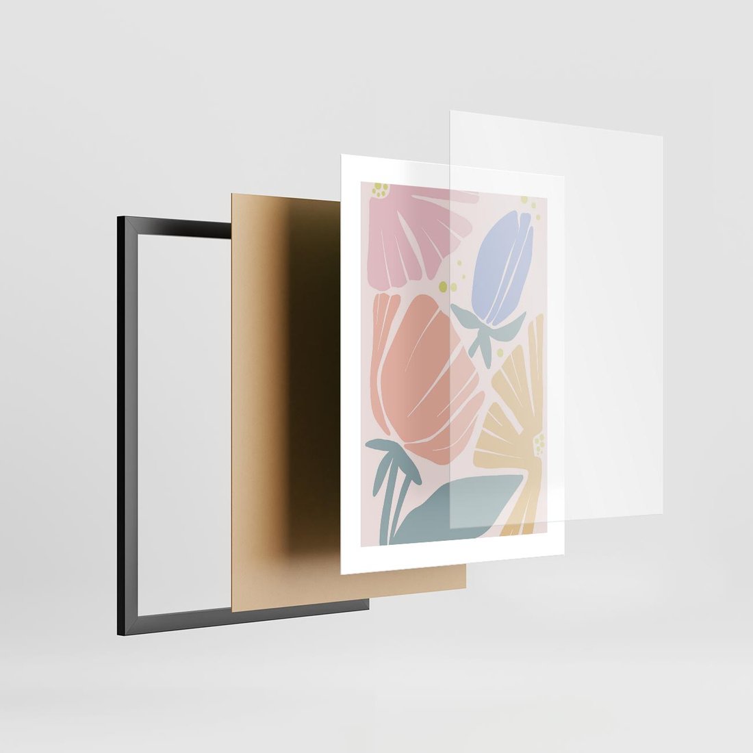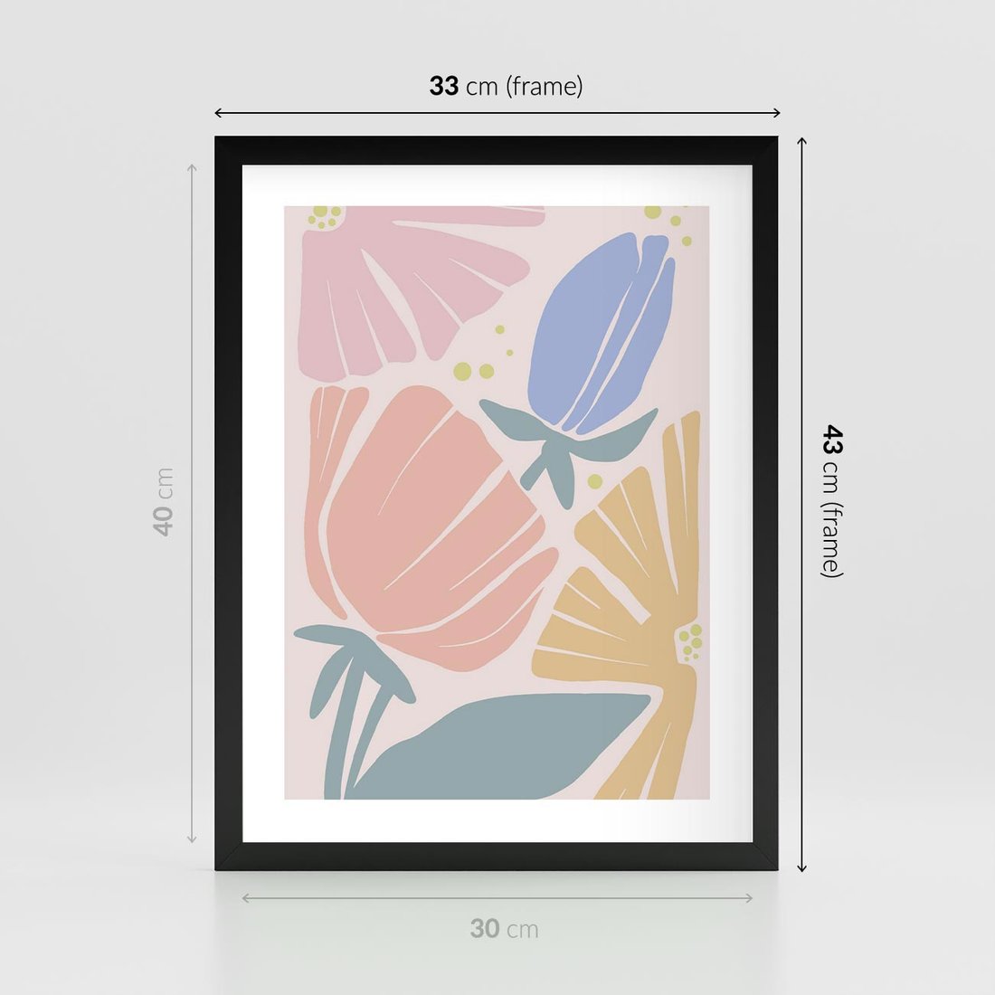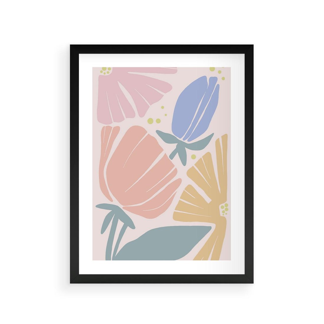 Plakat w ramie 30x40 - Rozkwitające Harmonie Natury - pastelowe kwiaty, na beżowym tle - rama czarna