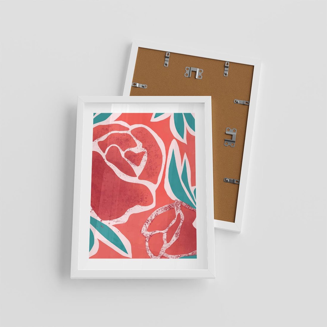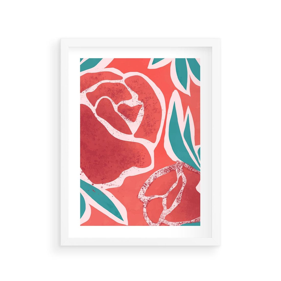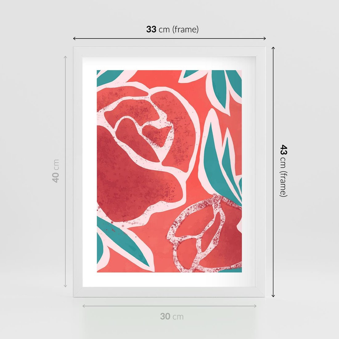 Plakat w ramie 30x40 - Rozkwitające Kształty - nowoczesny plakat, abstrakcyjne róże - rama biała
