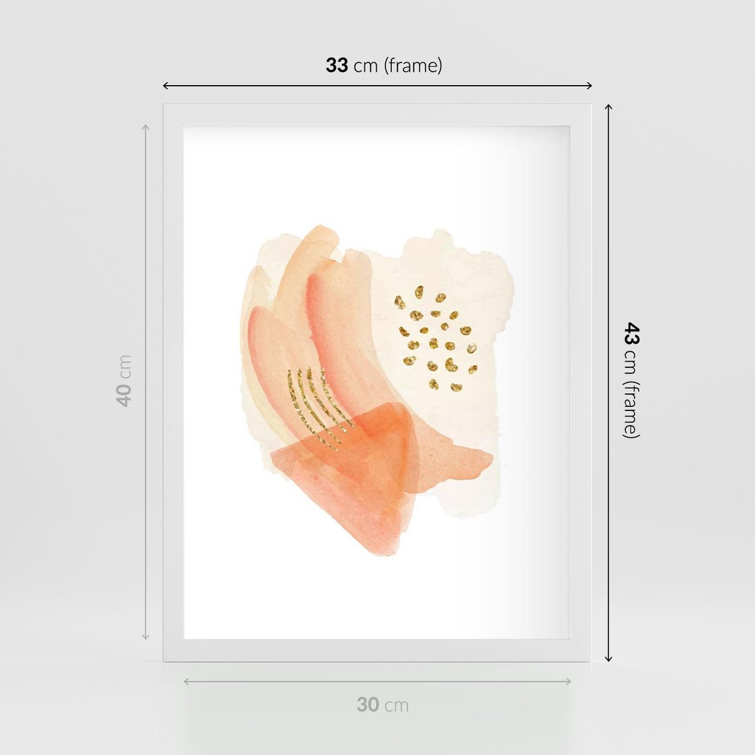 Plakat w ramie 30x40 - Rozkwitające Odbicia Form - abstrakcyjne akwarelowe plamy, minimalizm - rama biała