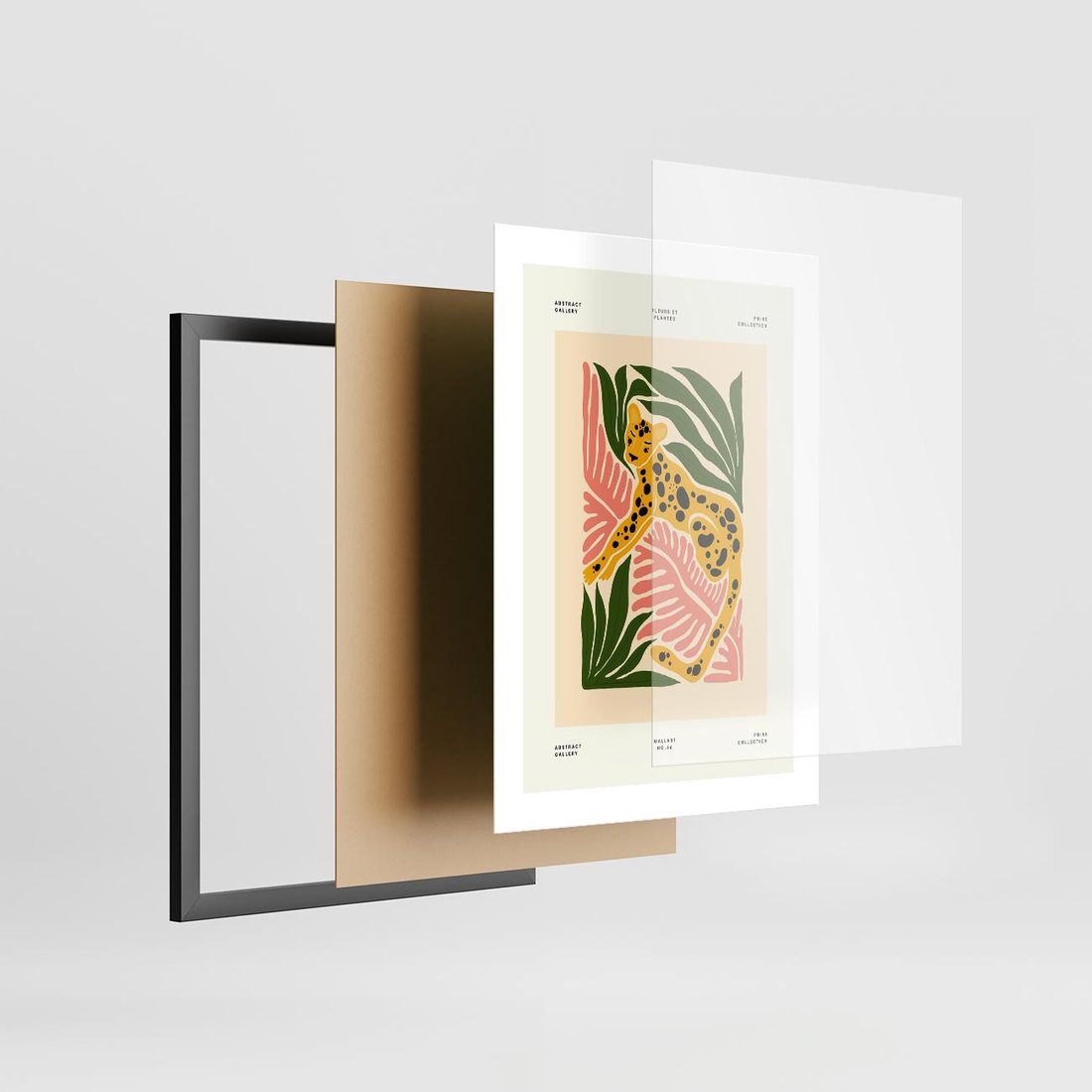 Ten nowoczesny plakat łączy siłę geparda z duchem boho, tworząc wyjątkową mieszankę elegancji i swobody. Wyraźna ikona natury w nowoczesnym wydaniu.