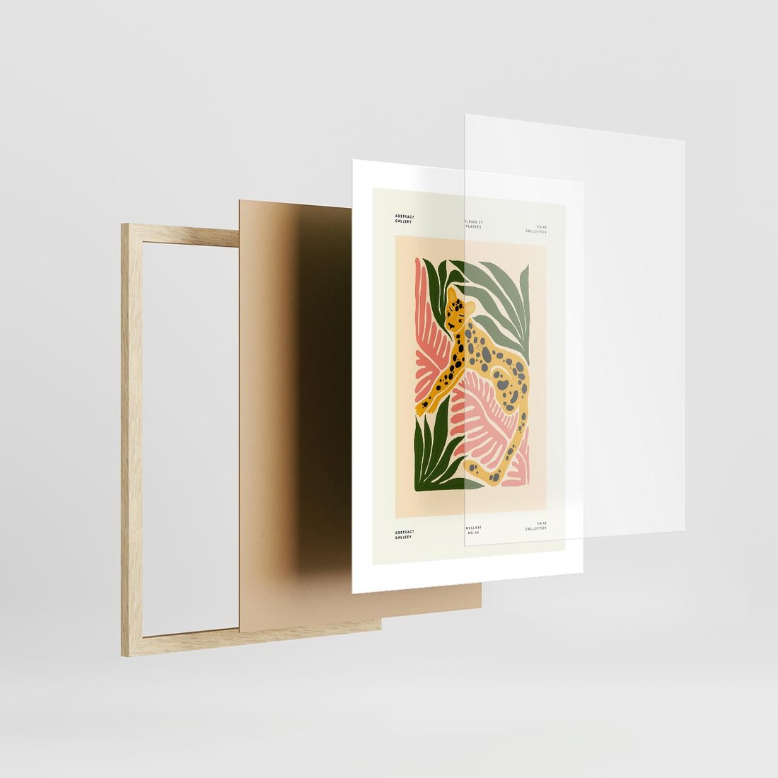 Ten nowoczesny plakat łączy siłę geparda z duchem boho, tworząc wyjątkową mieszankę elegancji i swobody. Wyraźna ikona natury w nowoczesnym wydaniu.