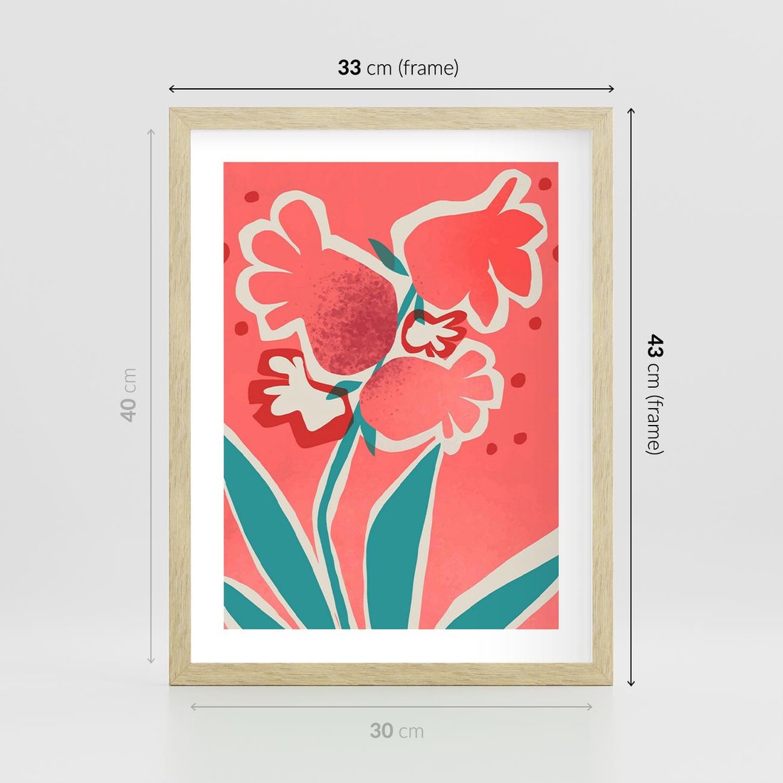 Plakat w ramie 30x40 - Rozkwitające Plamy i Formy - nowoczesny plakat, abstrakcyjne kwiaty - rama drewno