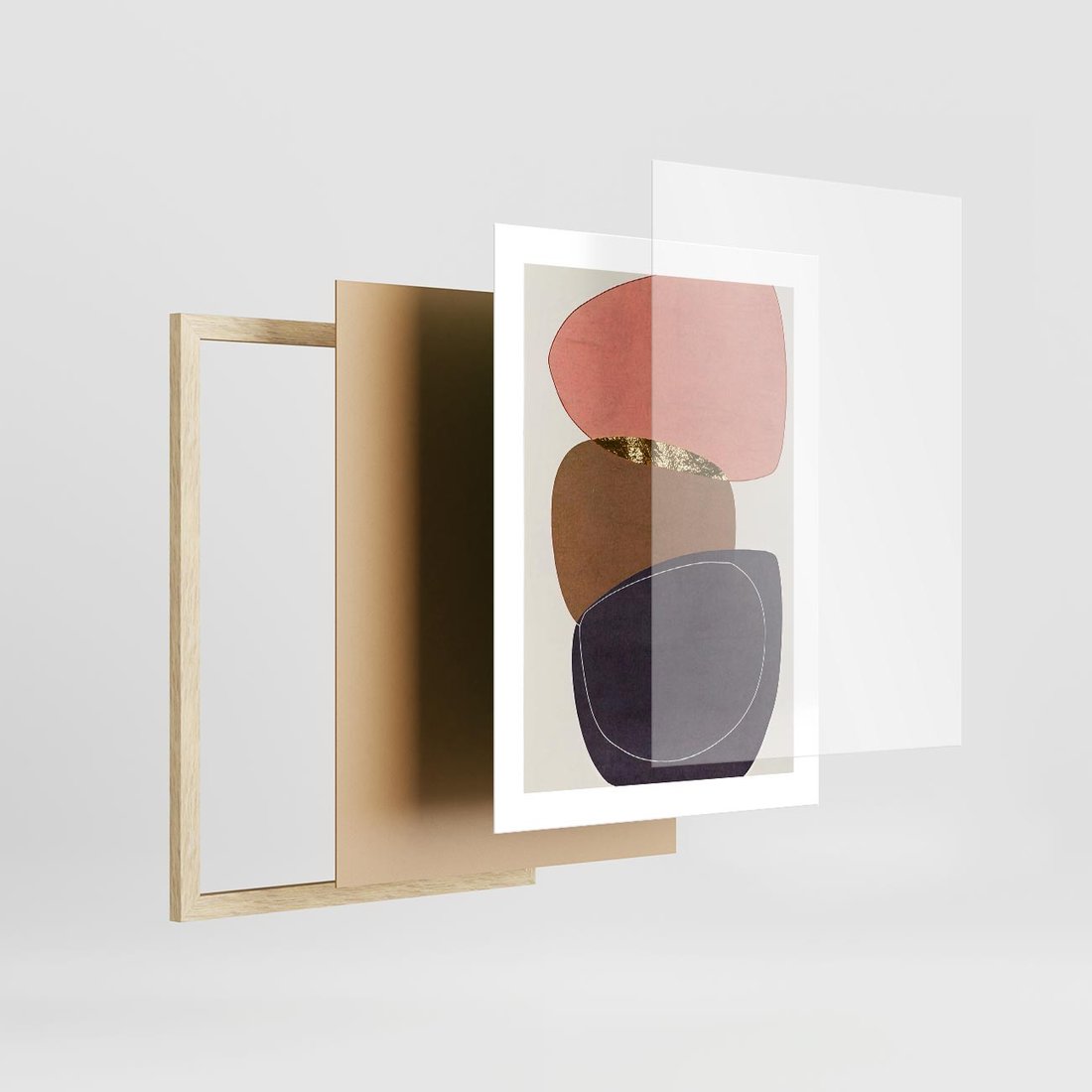 Plakat w ramie 30x40 - Rozkwitające Przenikające Formy - abstrakcyjny obraz, geometryczne formy - rama drewno