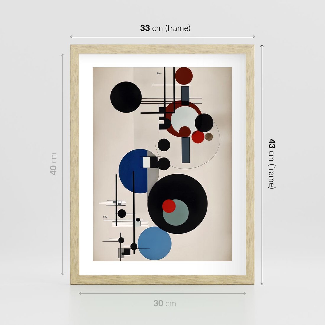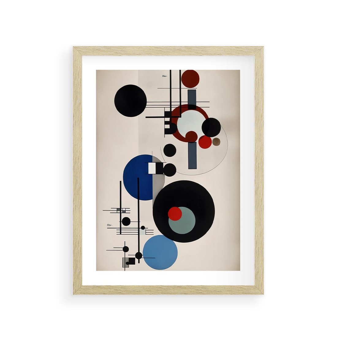 Plakat w ramie 30x40 - Rozkwitające Wibracje Wyobraźni - abstrakcyjna geometryczna kompozycja, koła linie - rama drewno