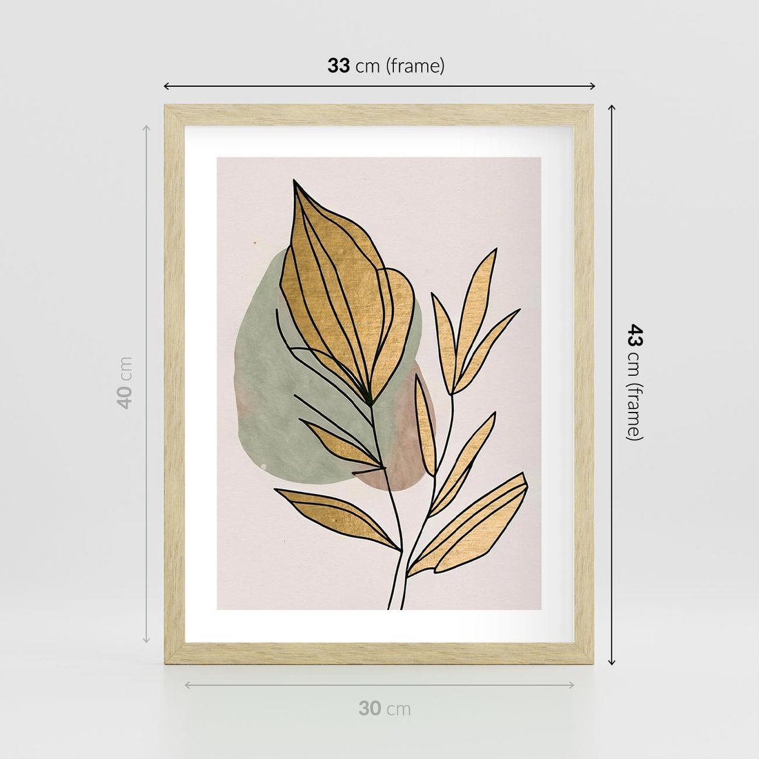 Plakat w ramie 30x40 - Rozkwitające Wnętrza Światła - abstrakcyjny obraz boho, liście - rama drewno