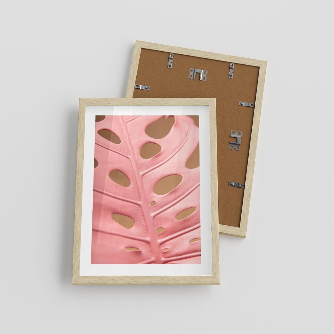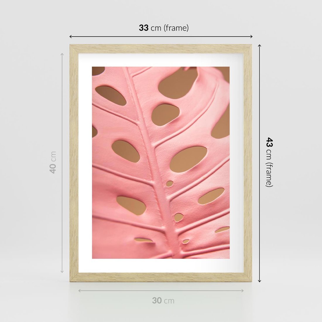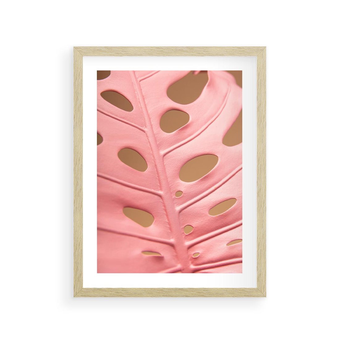 Plakat w ramie 30x40 - Różowa monstera w pełnym rozkwicie - różowa, monstera - rama drewno