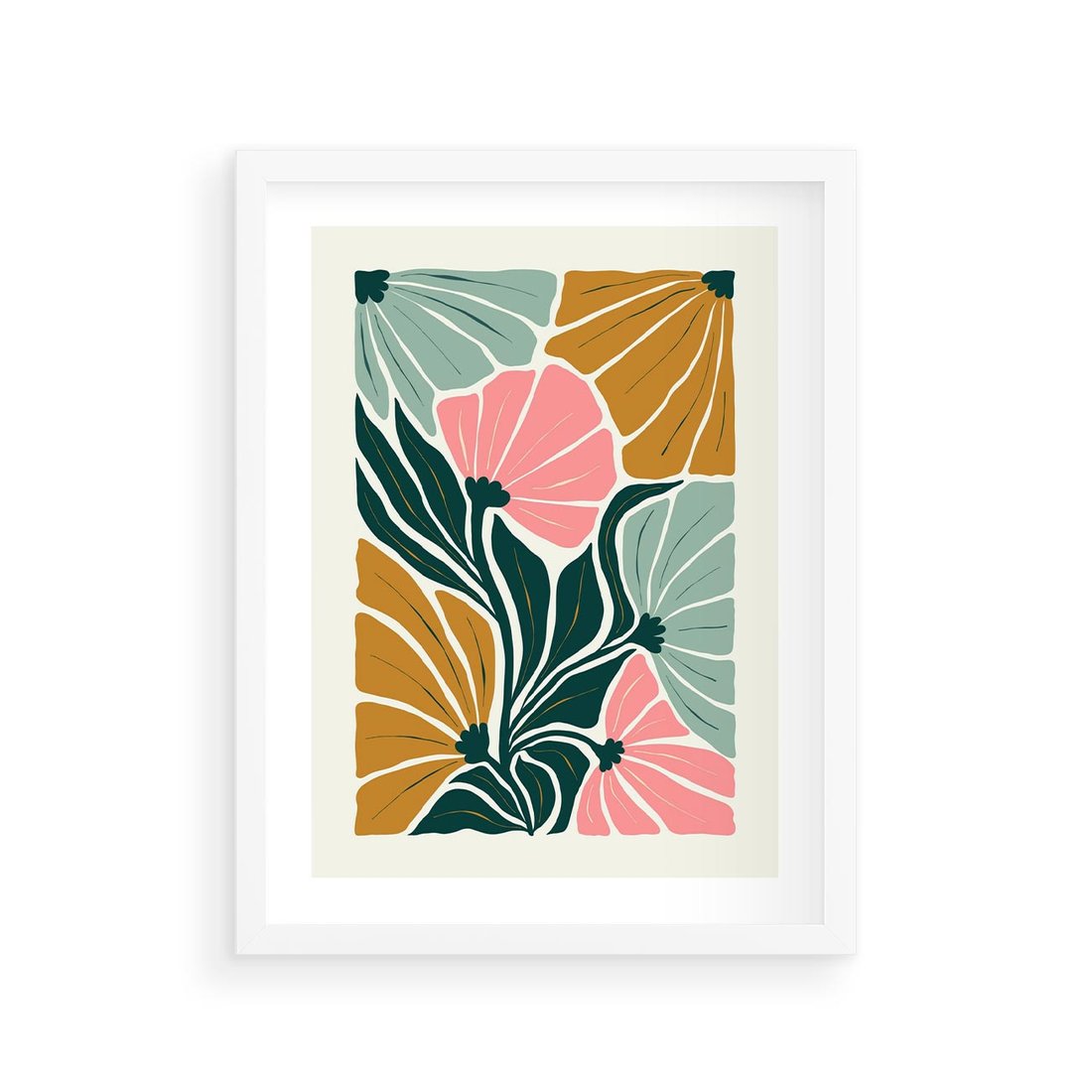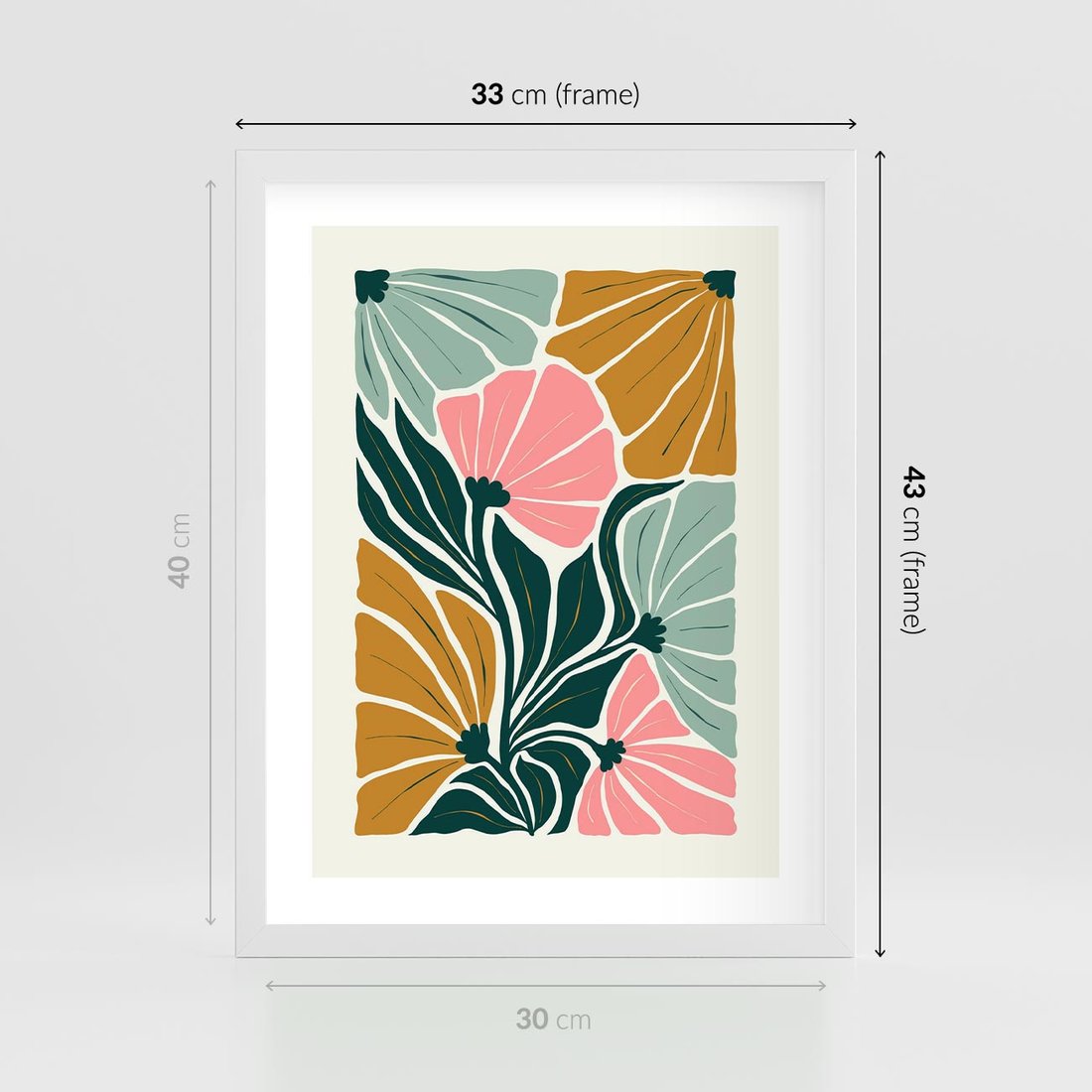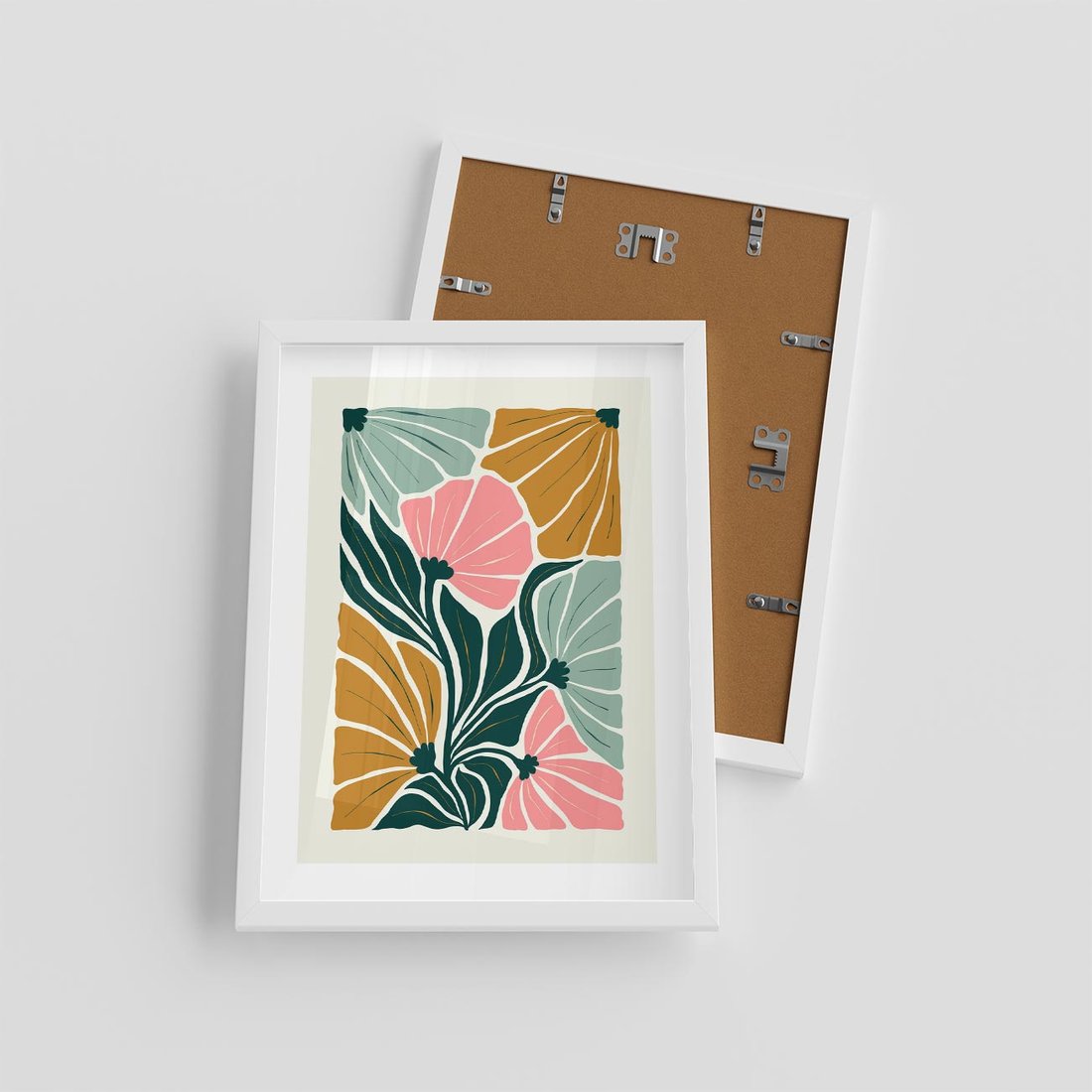 Plakat w ramie 30x40 - Rozplątane Myśli - abstrakcyjna kompozycja, pastelowe kwiaty - rama biała