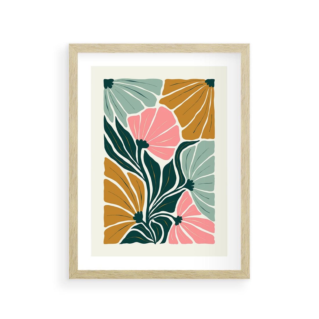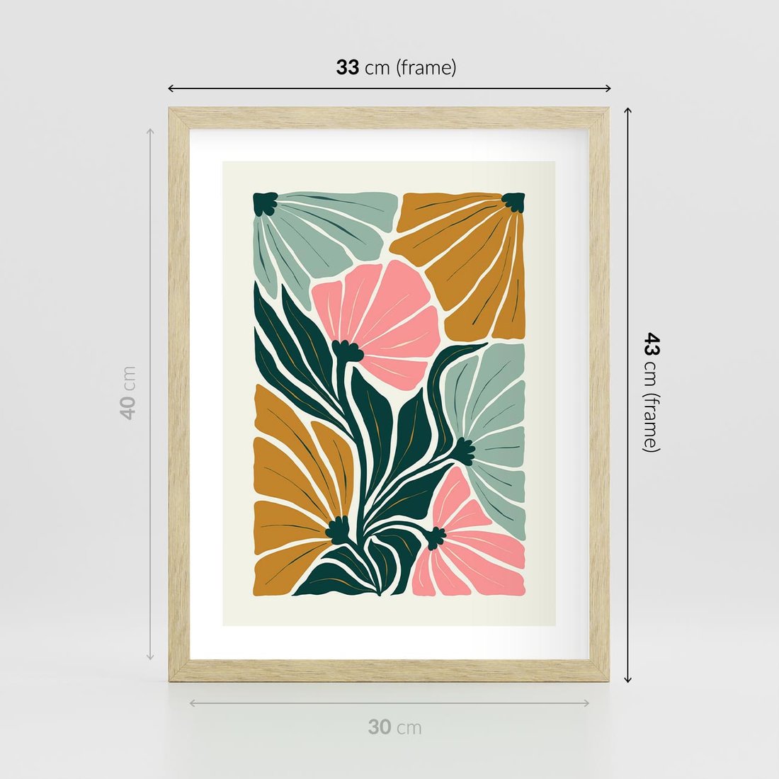 Plakat w ramie 30x40 - Rozplątane Myśli - abstrakcyjna kompozycja, pastelowe kwiaty - rama drewno