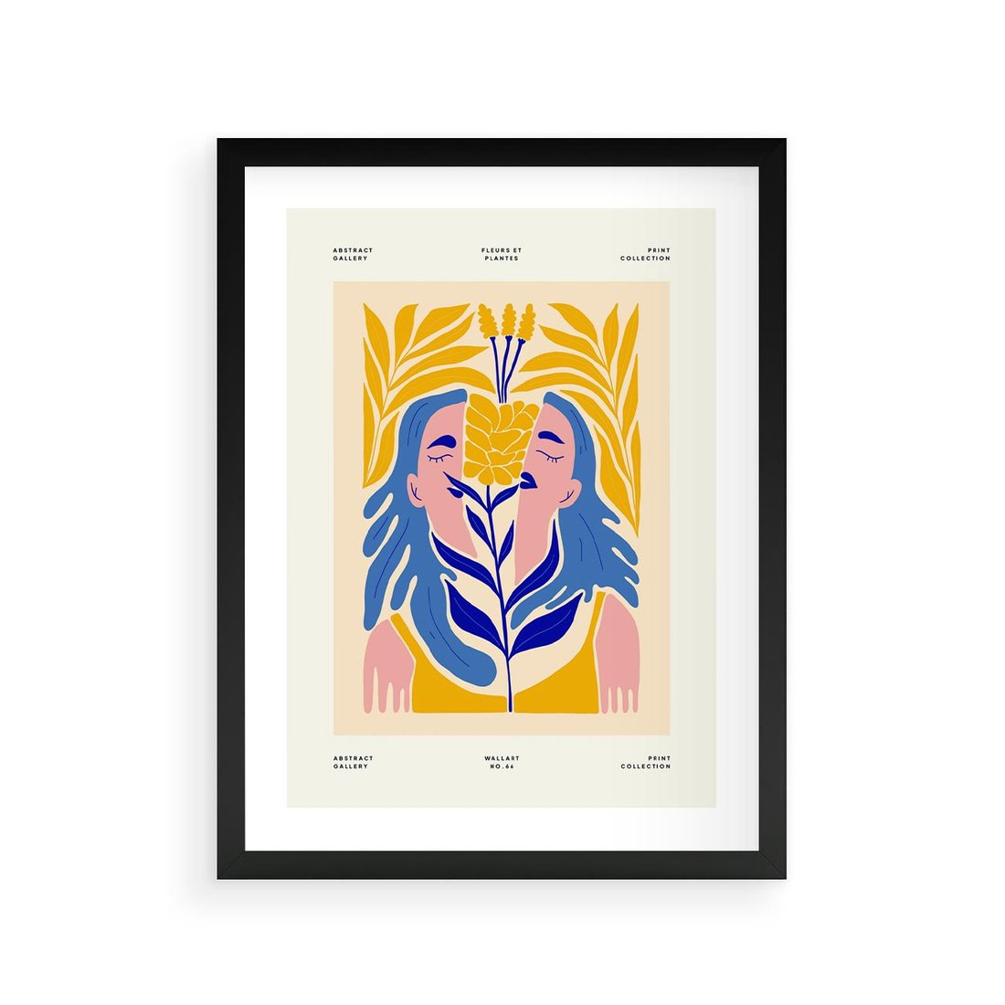 Ta nowoczesna sztuka łączy abstrakcyjne kwiaty z delikatnymi pastelowymi odcieniami, tworząc harmonijną kompozycję wokół postaci kobiecej. Inspirująca i pełna piękna refleksja nad naturą i kobiecością.