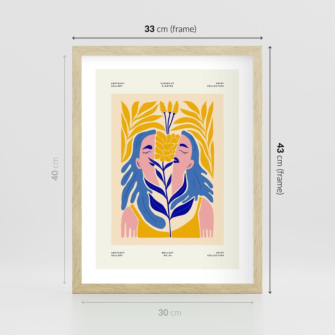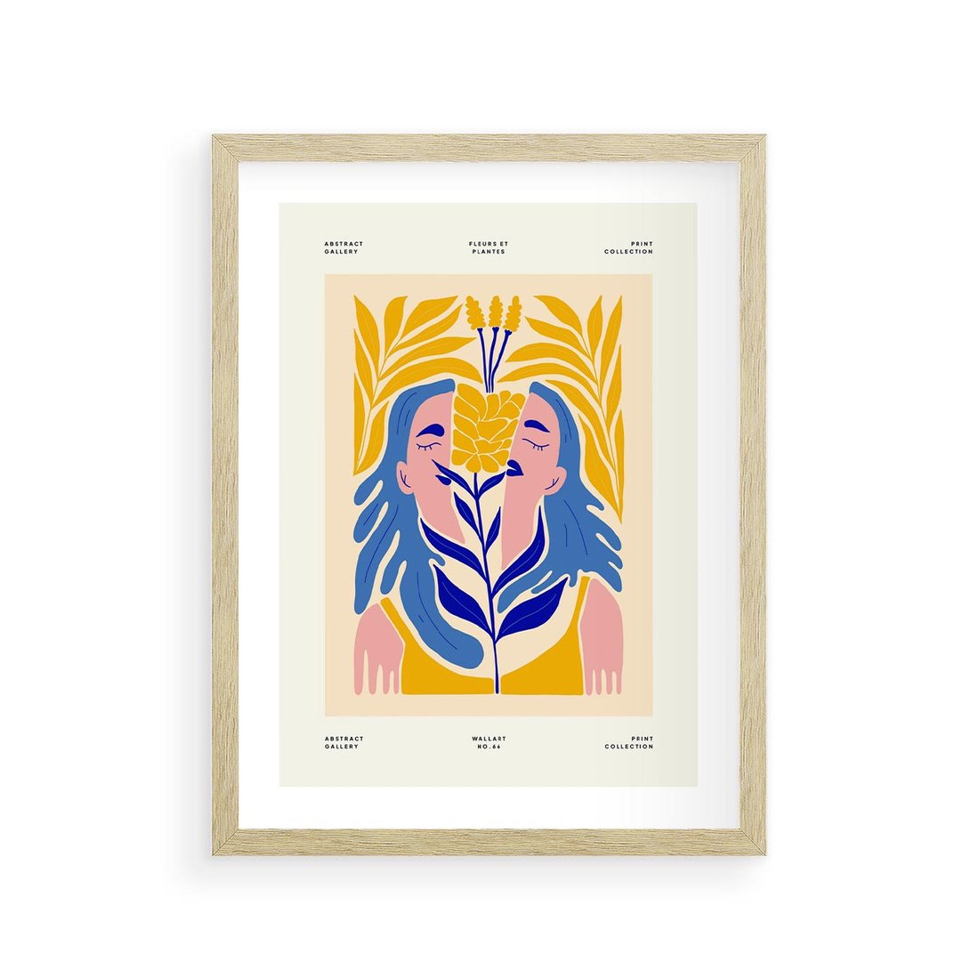 Ta nowoczesna sztuka łączy abstrakcyjne kwiaty z delikatnymi pastelowymi odcieniami, tworząc harmonijną kompozycję wokół postaci kobiecej. Inspirująca i pełna piękna refleksja nad naturą i kobiecością.