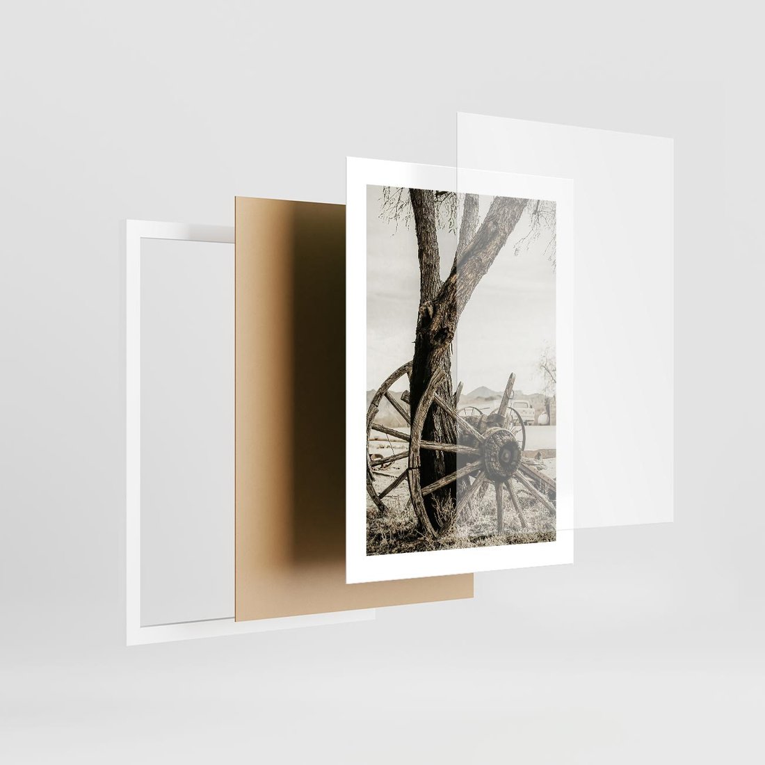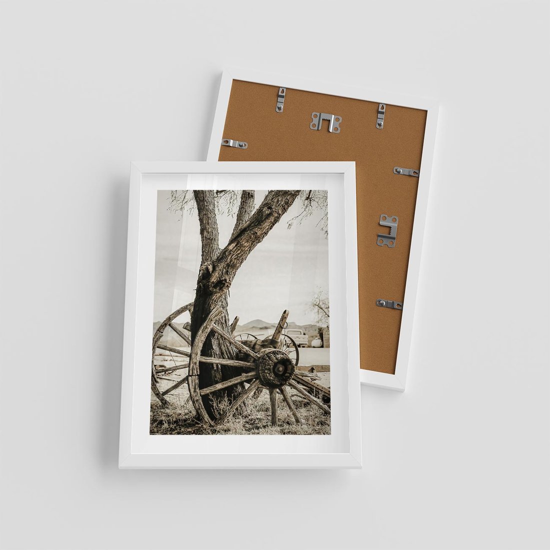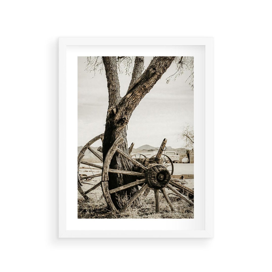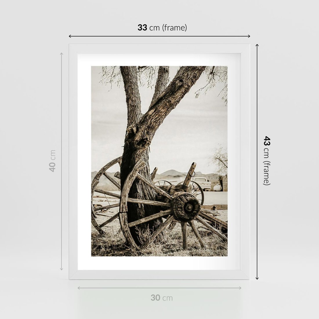 Plakat w ramie 30x40 - Rustykalna Tradycja - koło starego wozu, rustykalny styl - rama biała