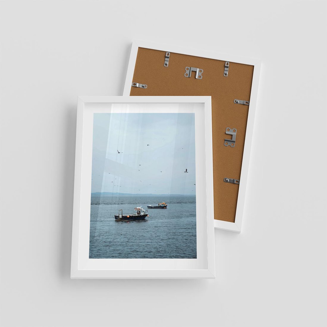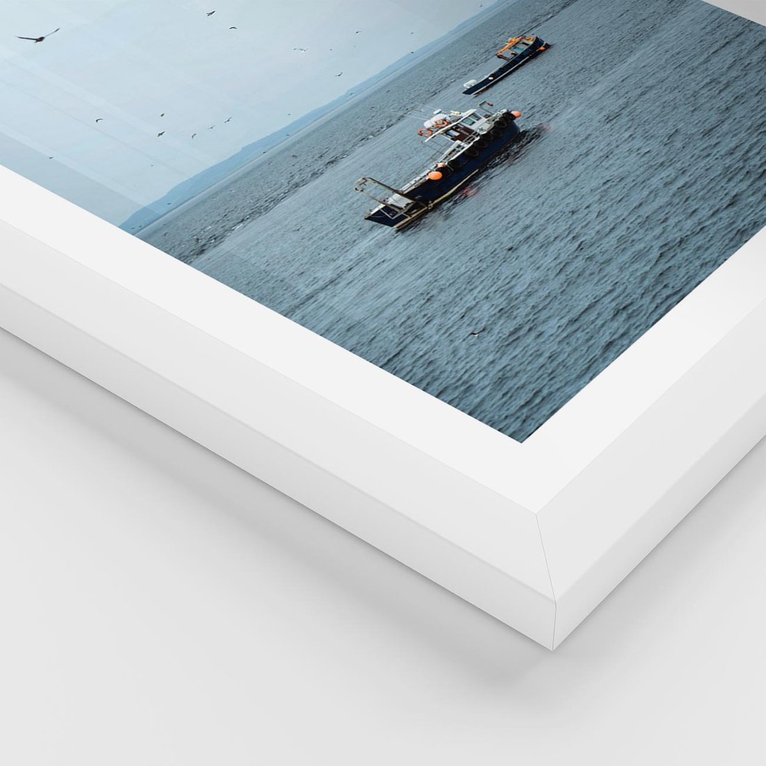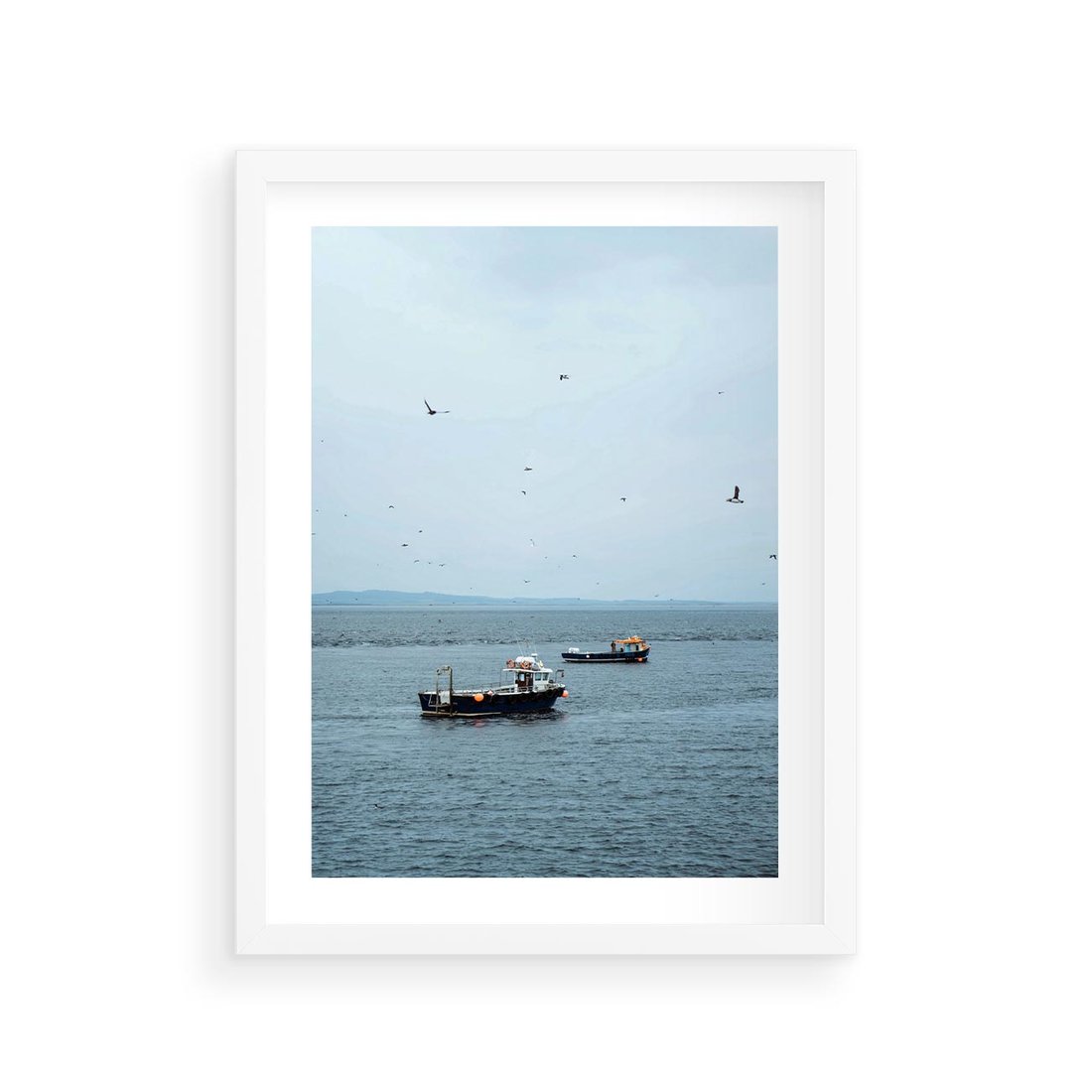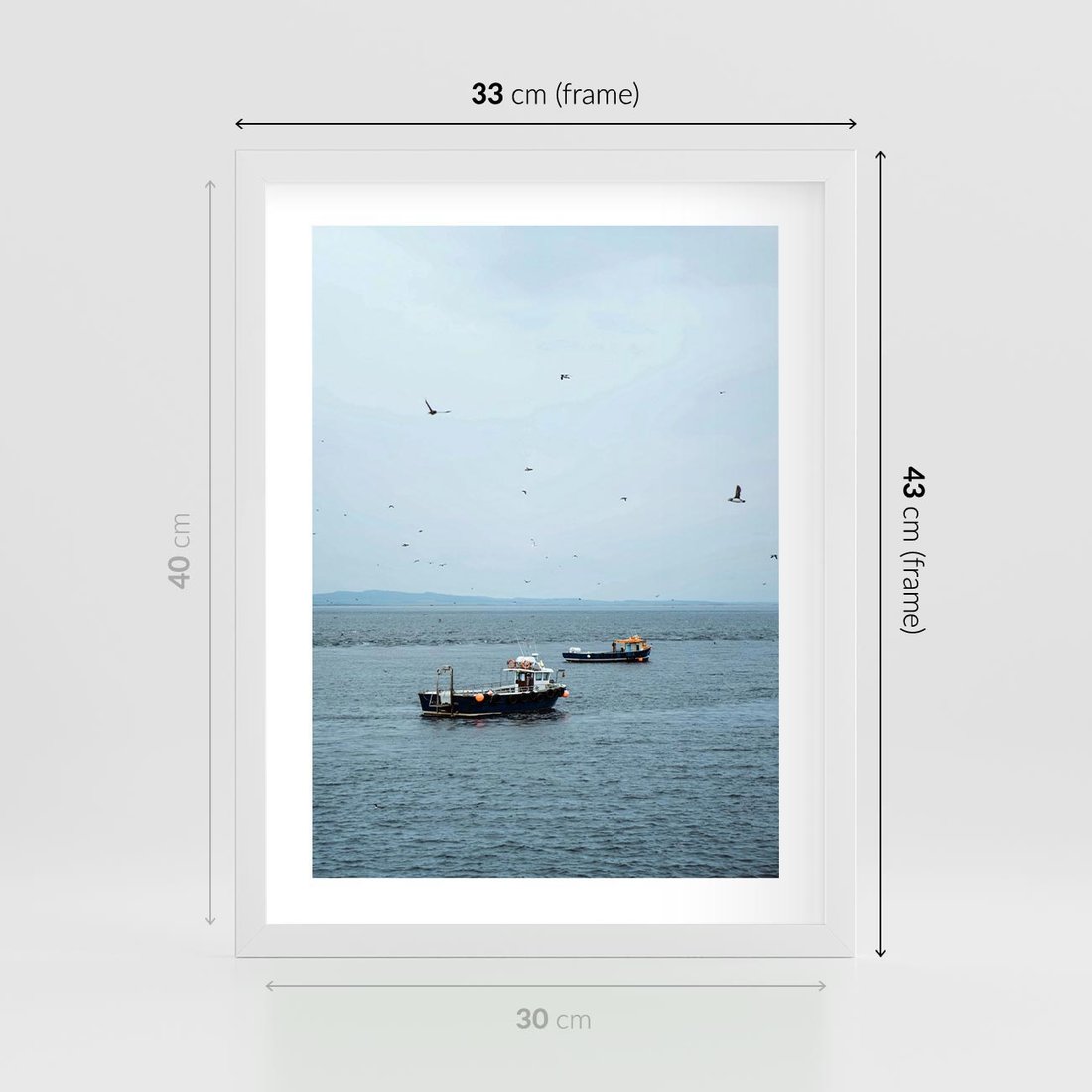 Plakat w ramie 30x40 - Rybacki Urok - morze, kutry rybackie - rama biała