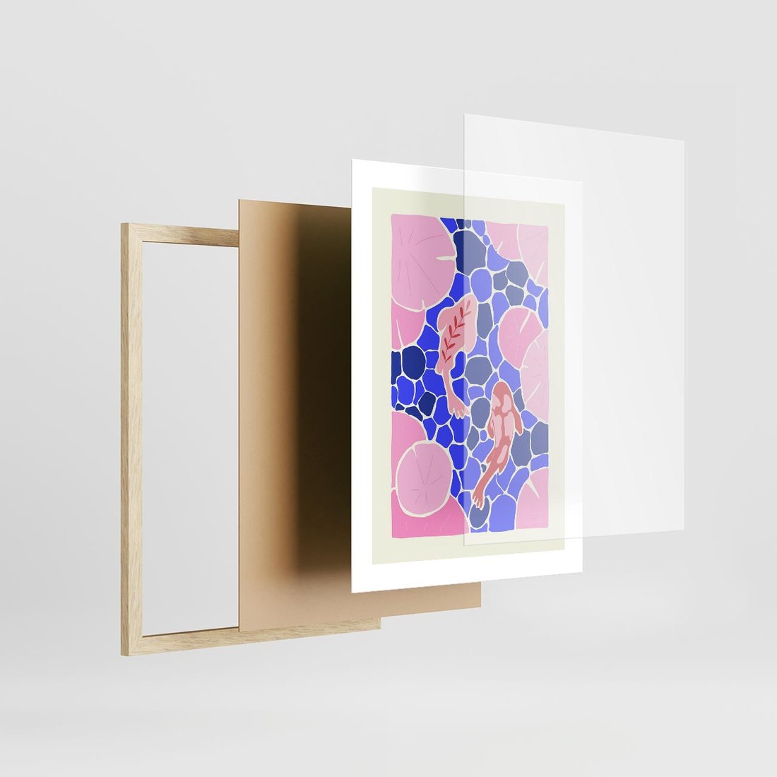 Ta wyjątkowa abstrakcja przenosi cię pod wodę, gdzie różowe ryby tańczą wśród kolorowej rafy. Odcienie różu i kobaltu tworzą magiczną atmosferę, która zachwyci Twoje zmysły.