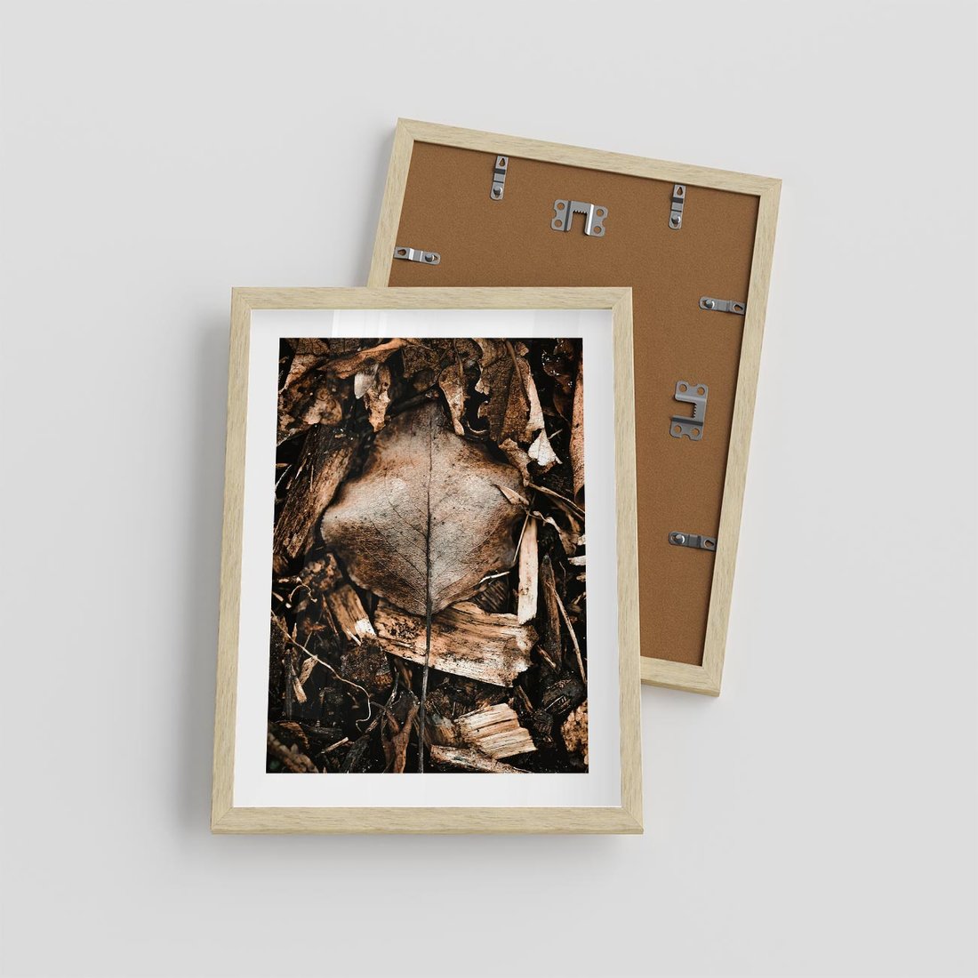 Plakat w ramie 30x40 - Samotny Liść - liść, brąz - rama drewno