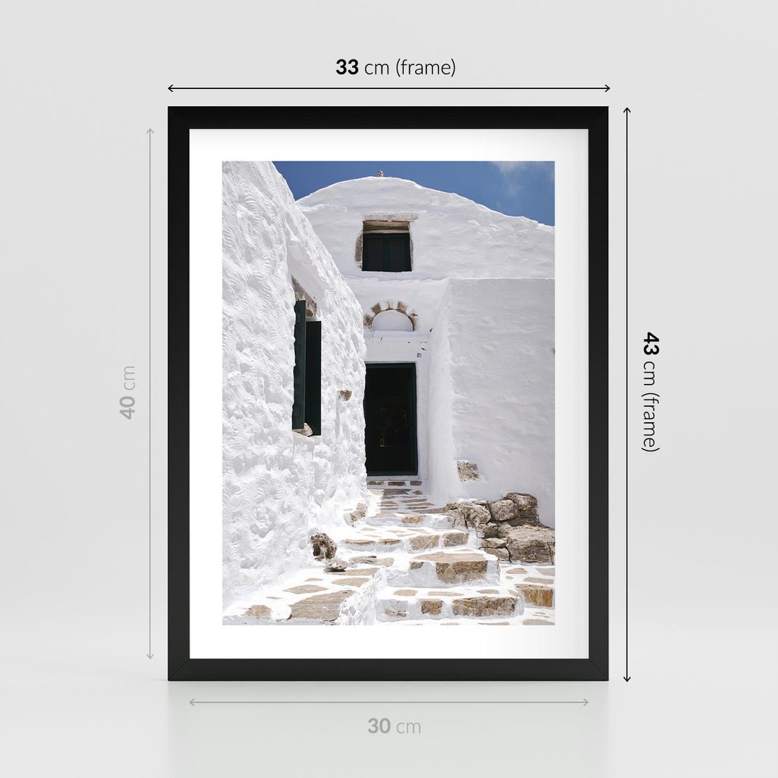 - Plakat w ramie 30x40 - Santorini - Grecja błękitem malowana