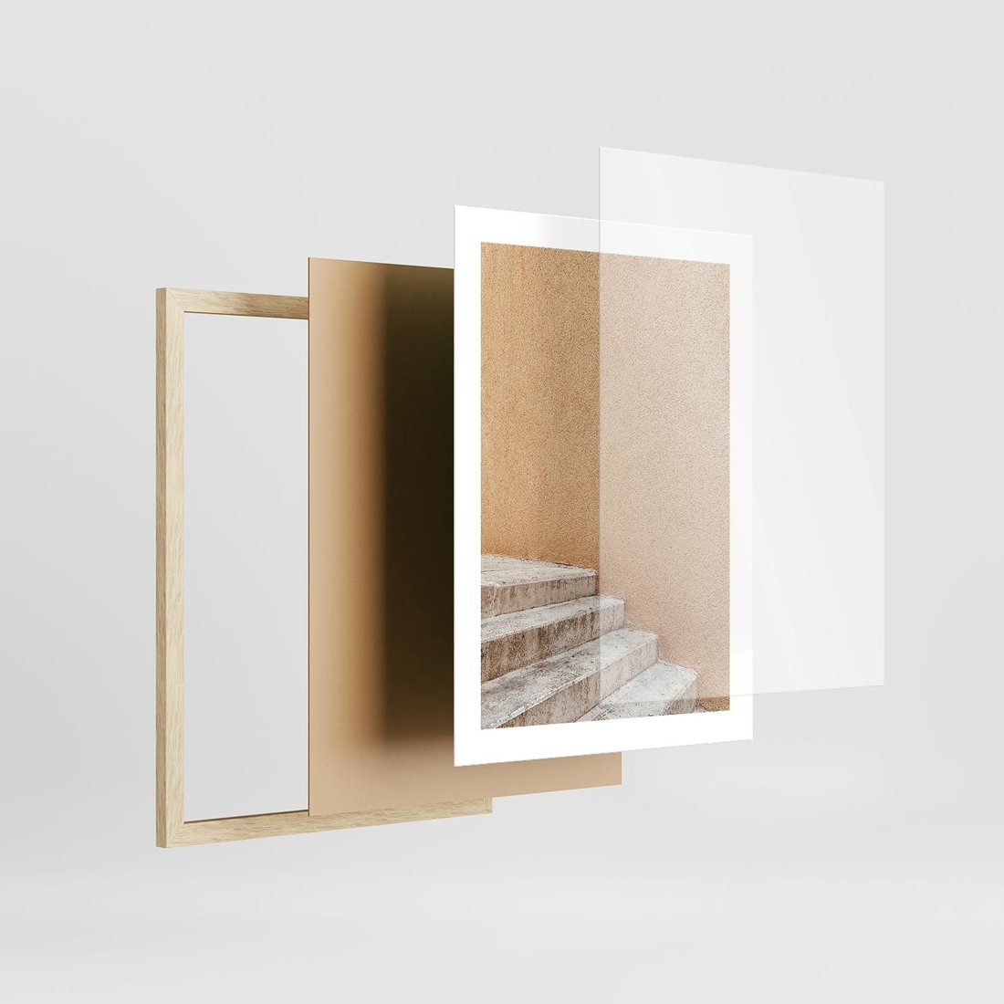 Plakat w ramie 30x40 - Schod w Beżu - schody, minimalizm - rama drewno