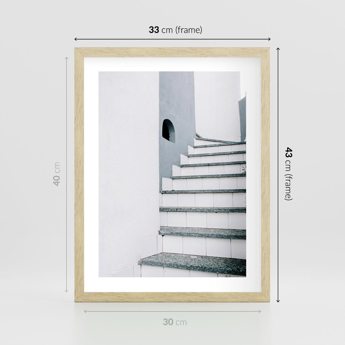 Plakat w ramie 30x40 - Schody ku Urokowi Wyspy - schody, santorini - rama drewno