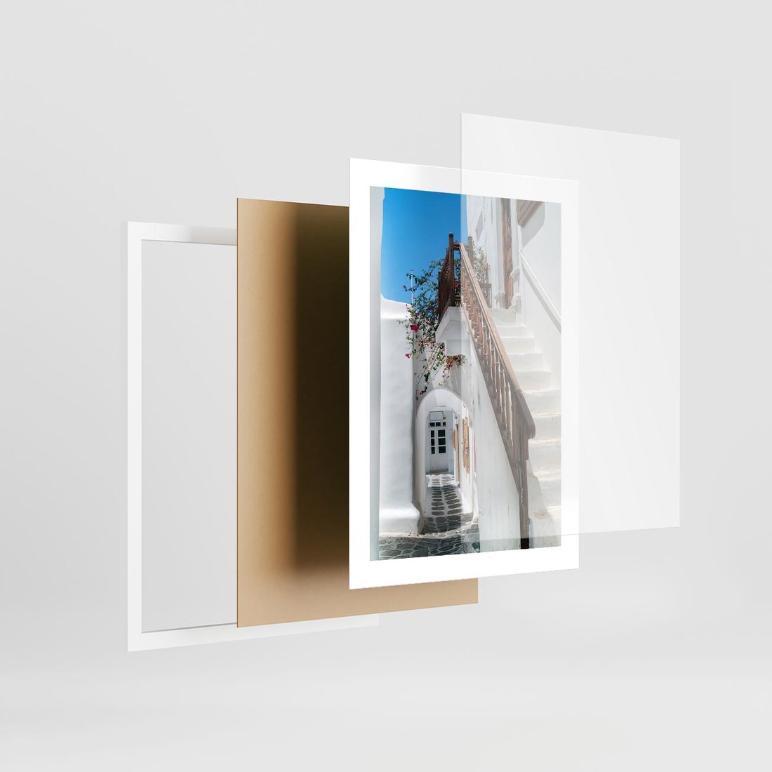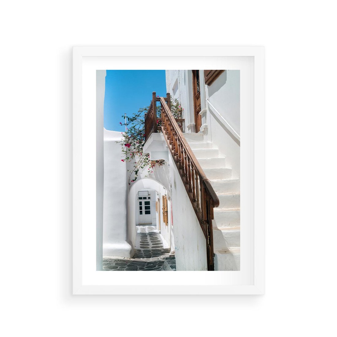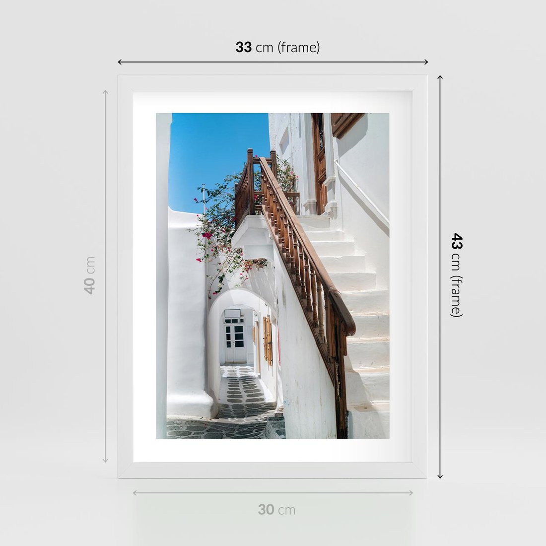 Plakat w ramie 30x40 - Schody Uliczką W dół - schody, uliczka - rama biała