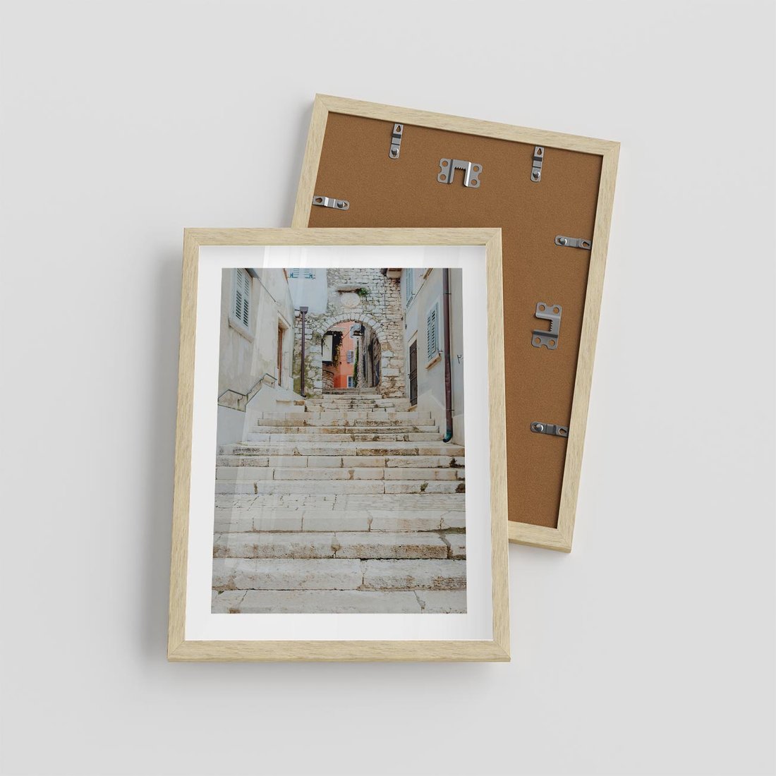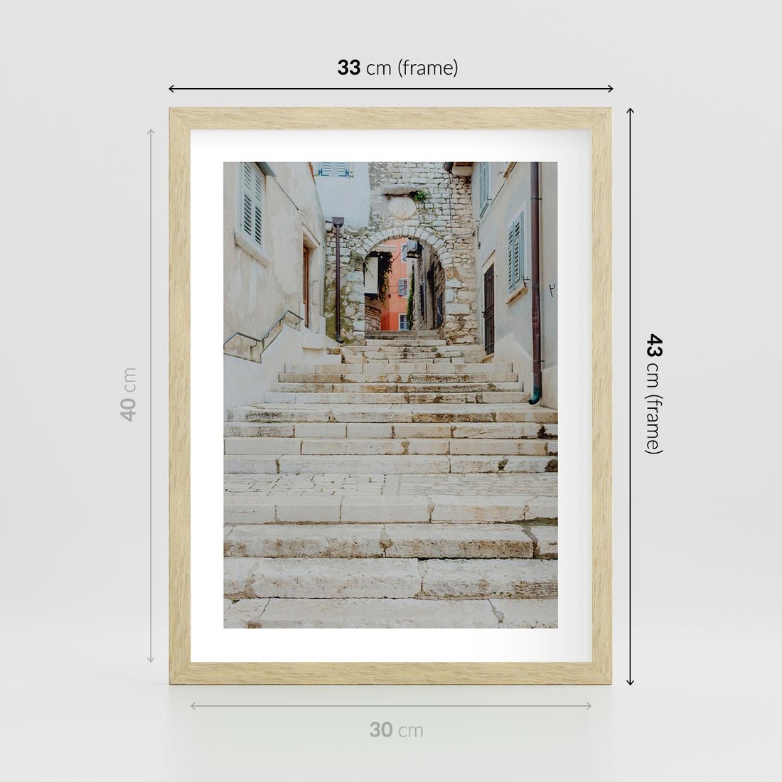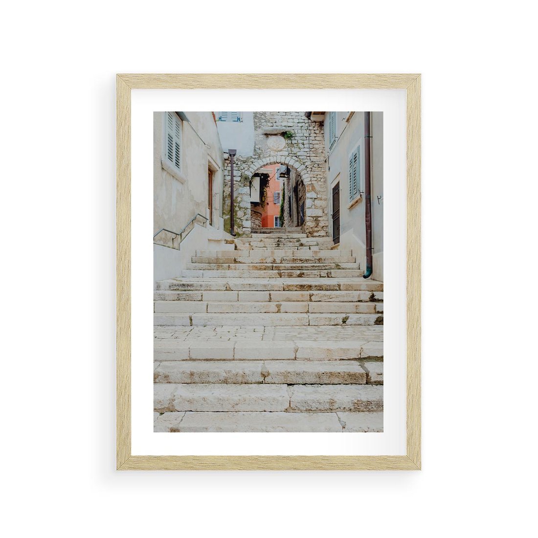 Plakat w ramie 30x40 - Schody we Włoskim Miasteczku - schody, śródziemnomorskie miasteczko - rama drewno