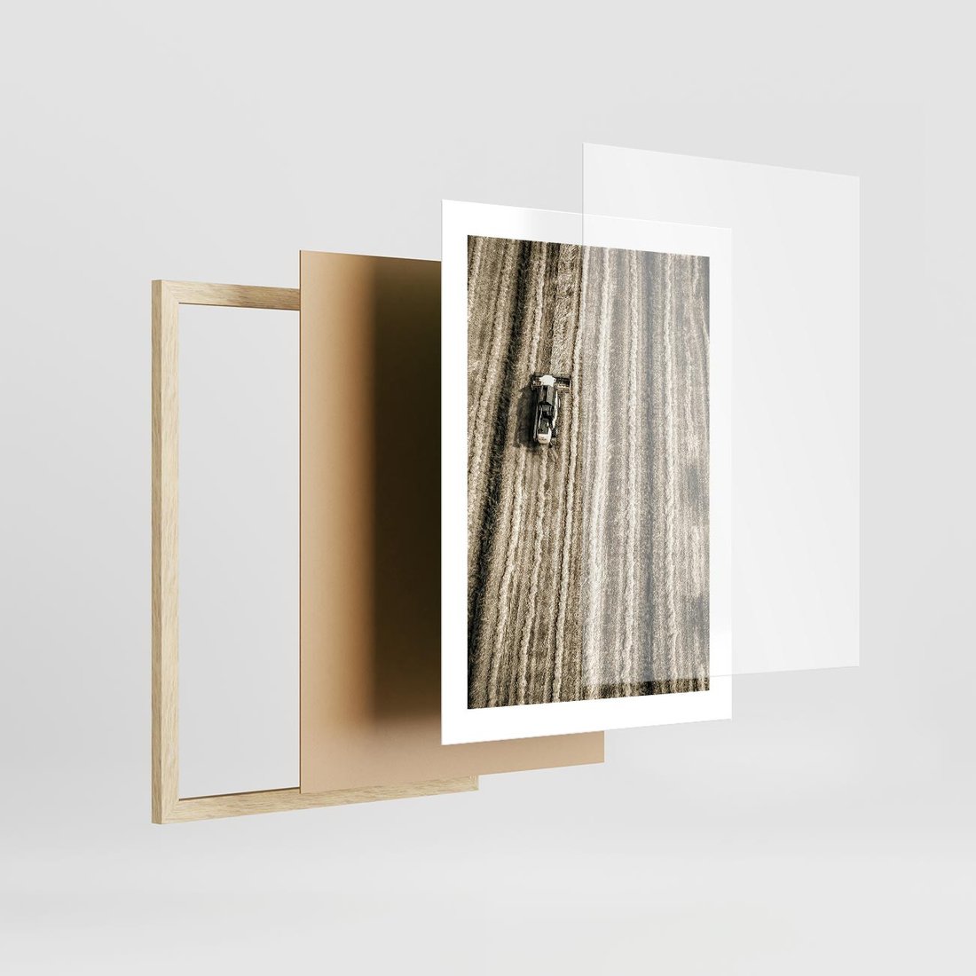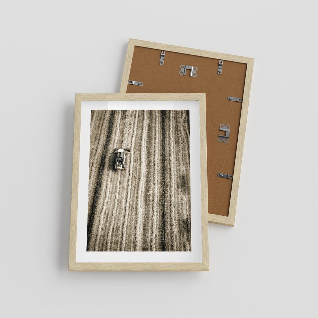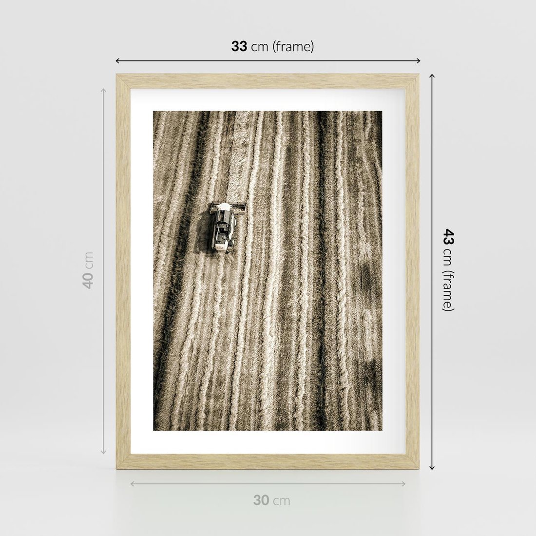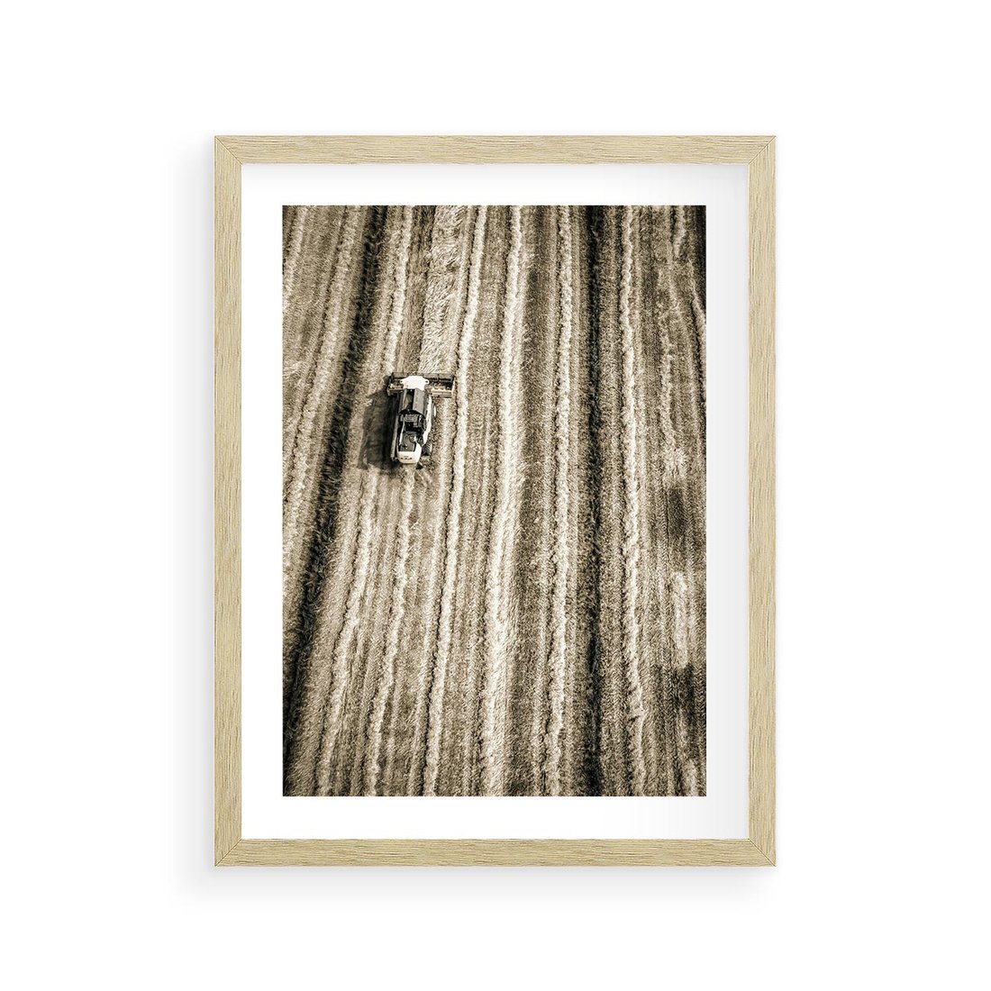 Plakat w ramie 30x40 - Sepia na Polu - kombajn, pole - rama drewno