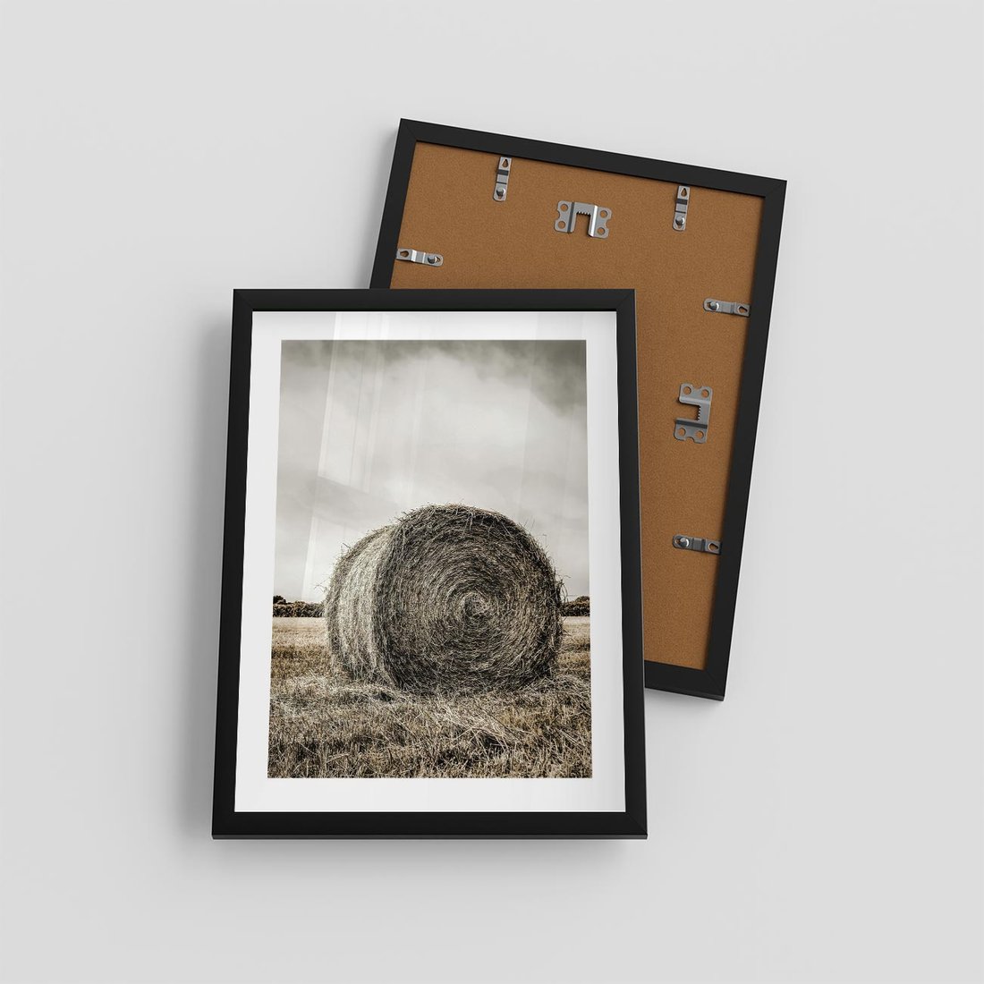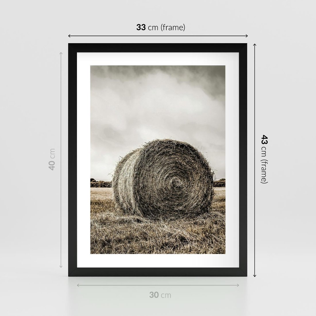 Plakat w ramie 30x40 - Siano w Sepii: Wiejska Tradycja - snopek siana, bela siana - rama czarna