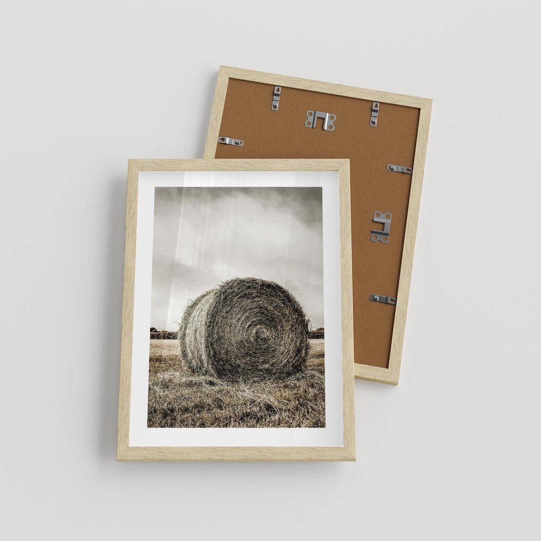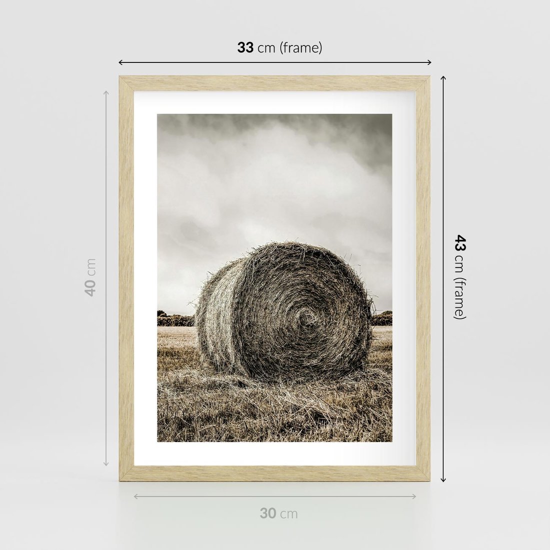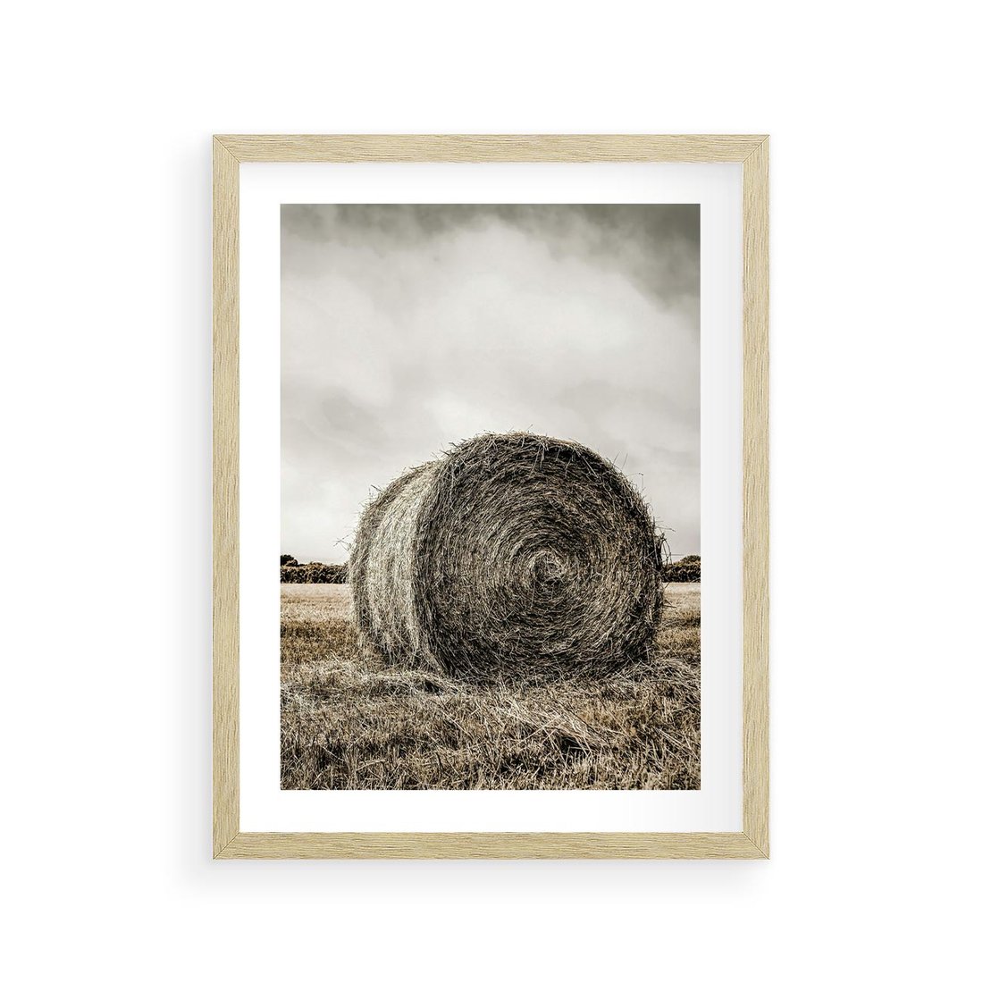 Plakat w ramie 30x40 - Siano w Sepii: Wiejska Tradycja - snopek siana, bela siana - rama drewno