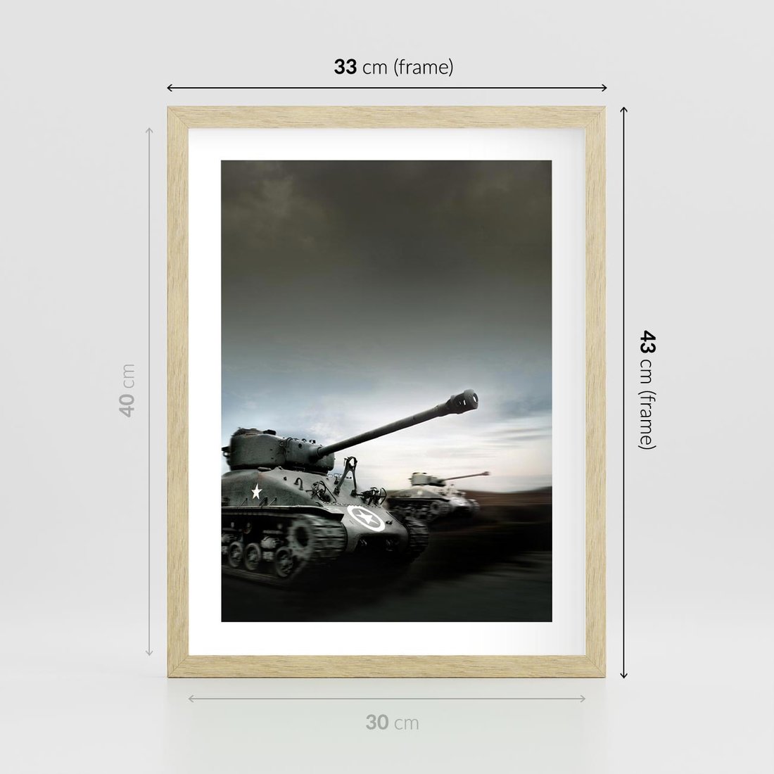 Plakat w ramie 30x40 - Siła i determinacja: czołgi wojenne - czołgi, wojna - rama drewno