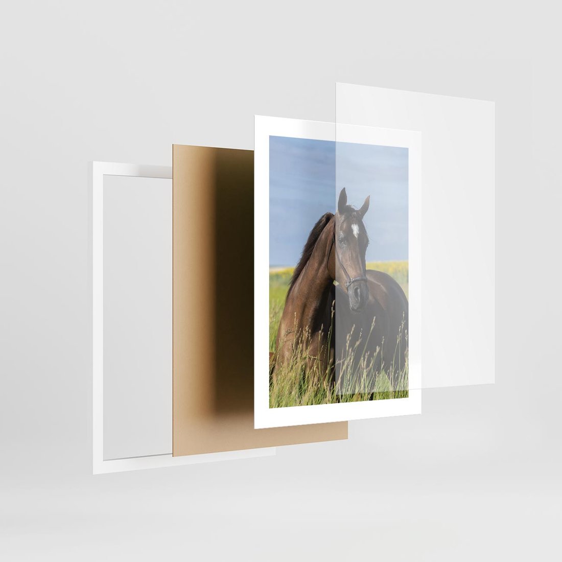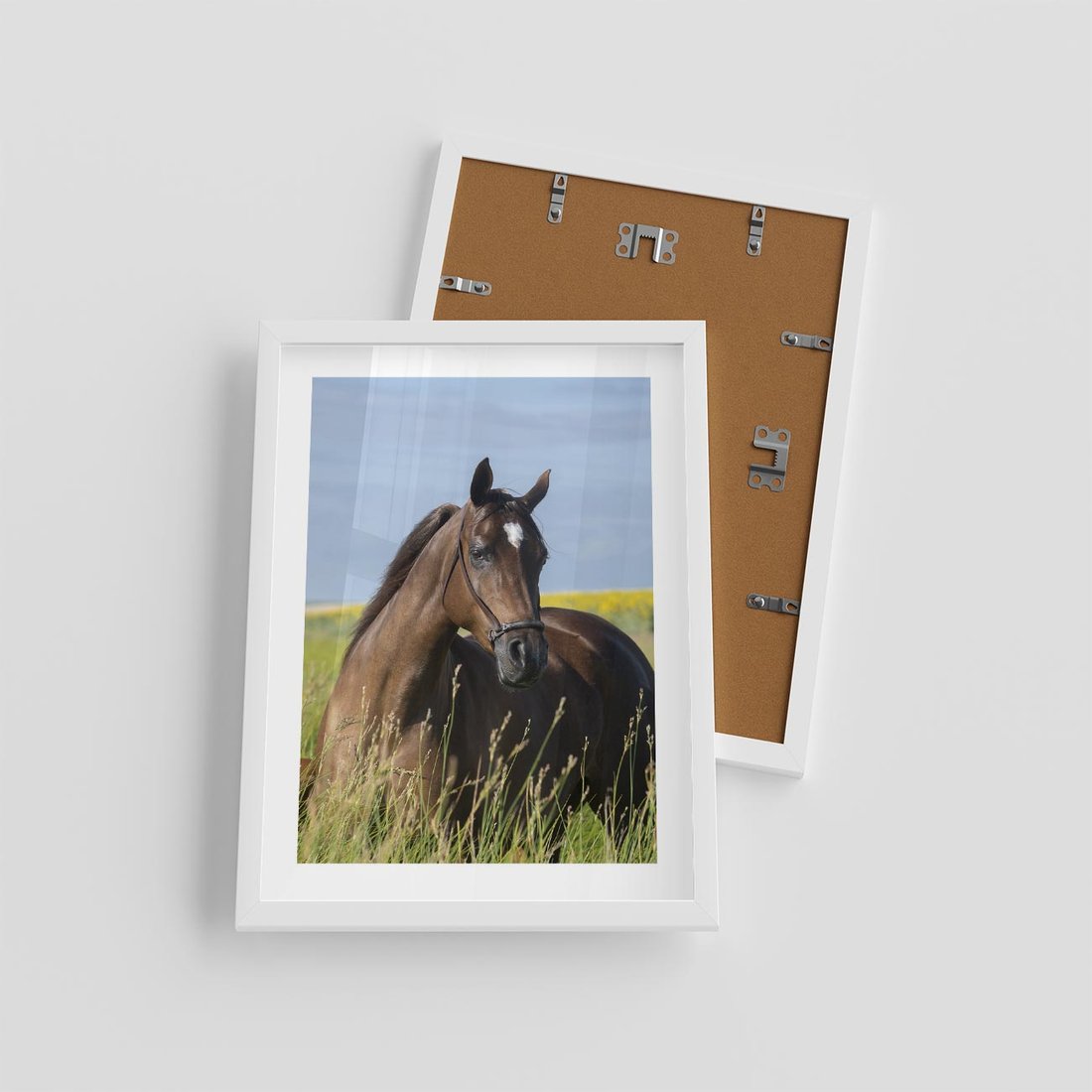 Plakat w ramie 30x40 - Siła i piękno natury - koń, łąka - rama biała